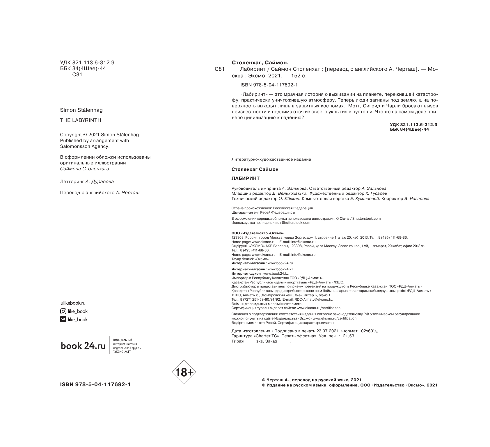 Книга: Лабиринт (Саймон Столенхаг); Эксмо, Like Book, Редакция 1, 2021