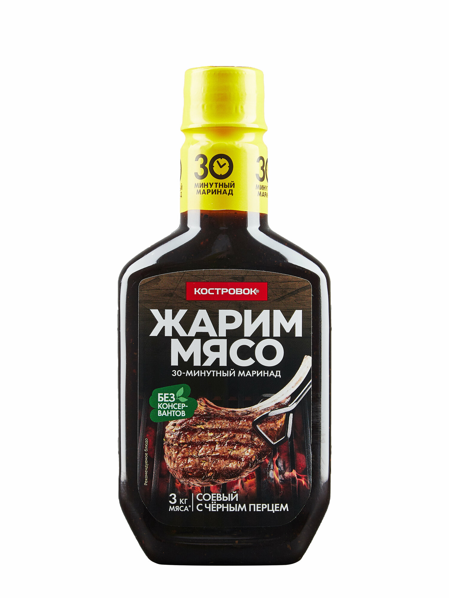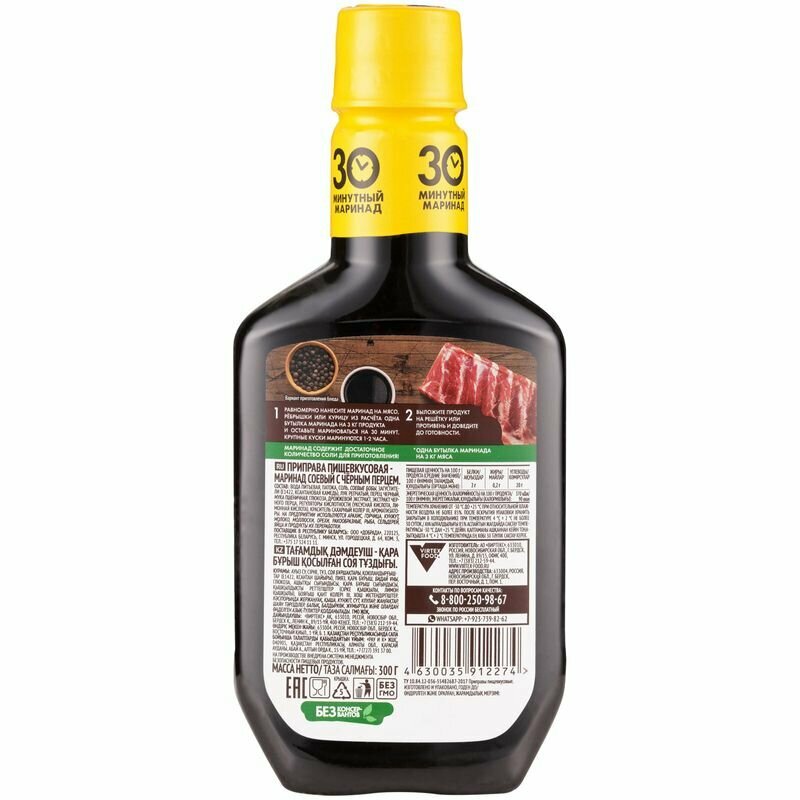 | Состав | Вода питьевая, патока, соль, соевые бобы, загустители (Е1422, ксантановая камедь), лук репчатый, перец чёрный, мука пшеничная, глюкоза, дрожжевой экстракт, экстракт чёрного перца, регуляторы кислотности (уксусная кислота, лимонная кислота), краситель сахарный колер III, ароматизаторы. |