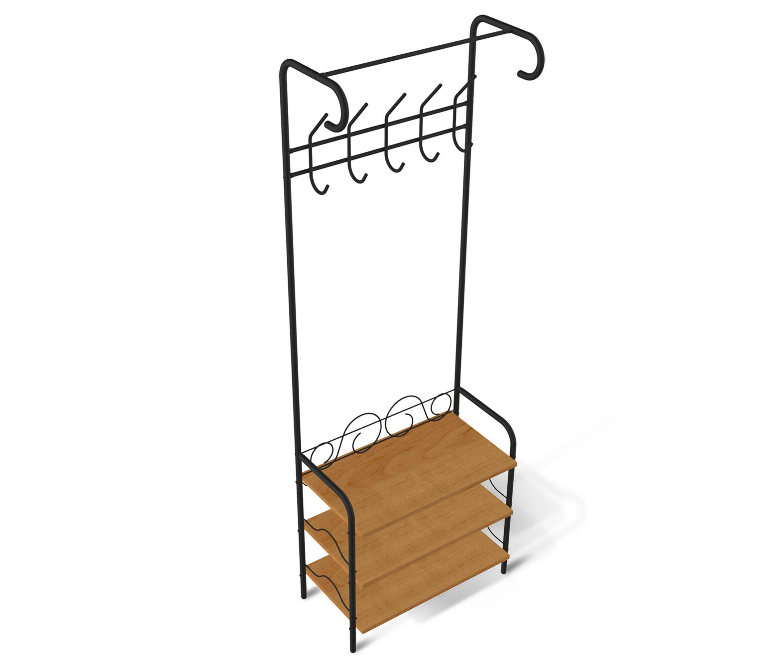 - Функциональная компакт-прихожая с полками и крючками;- Классический дизайн и устойчивая конструкция;- Максимально практичная в использовании - помогает поддерживать порядок;- Превосходно выглядит в интерьере небольших прихожих и холлов;- Предусмотрены крючки для верхней одежды, сумок и зонтов и полки для обуви, тапочек и обувных аксессуаров;- Каркас выполнен из металлической трубы 20х0,8 мм;- Порошковая окраска изделия, стойкая к механическим повреждениям;- Полки из ЛДСП, толщиной 16,5 мм;- Размеры полки: 600х350 мм;- Расстояние между полками: 180 мм;- Максимальная распределенная статическая нагрузка: на полку - 10 кг, на штангу - 8 кг,на крючок - 5 кг.- Изделие полностью разборное, что обеспечивает простоту сборки и хранения.