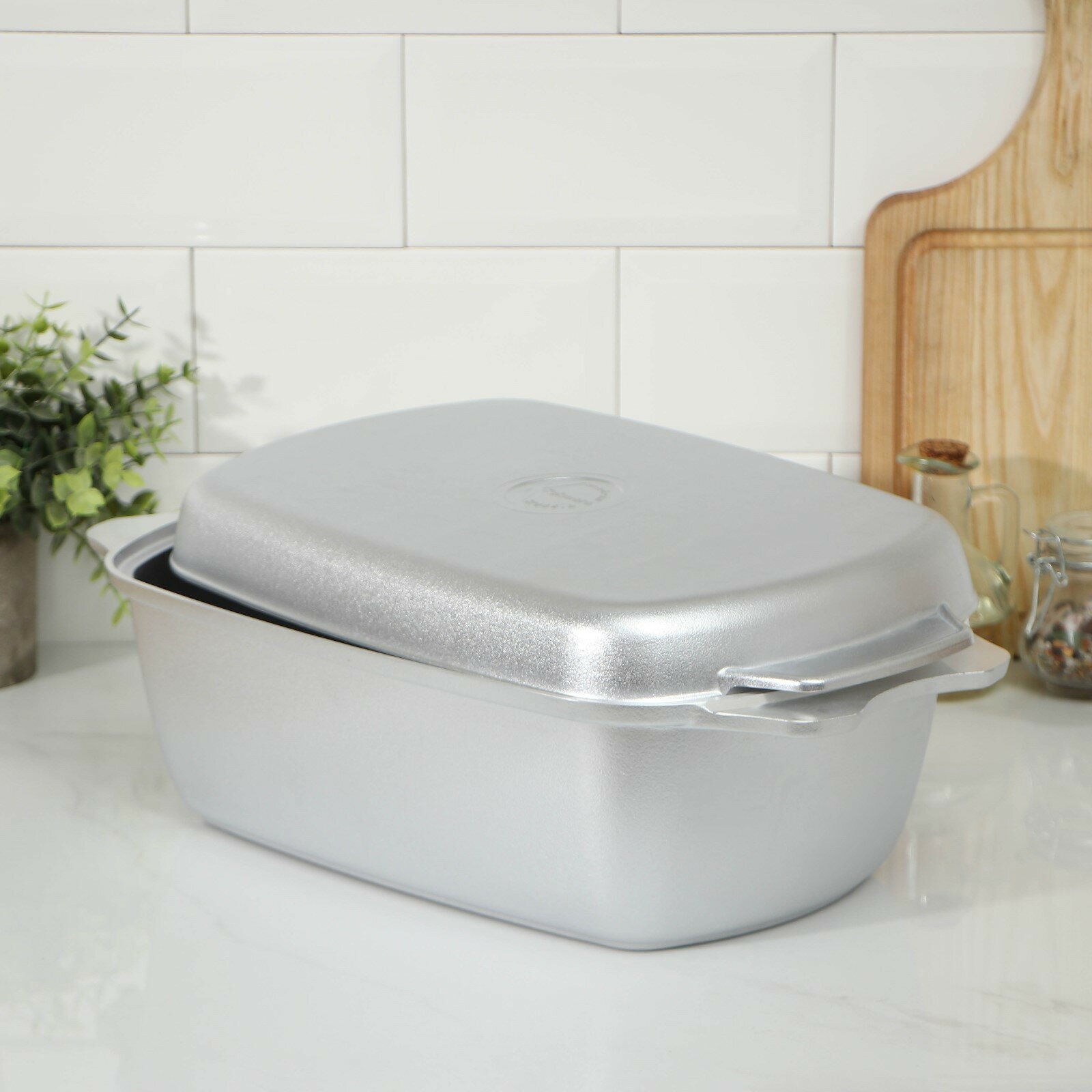 Это объемная гусятница, которая прекрасно подходит для жарки, пассировки и тушения. Благодаря специальному покрытию, на ней можно приготовить разнообразные блюда из мяса, рыбы, птицы и овощей практически не используя масло. Готовое блюдо получится не только вкусным, но и полезным. К основным преимуществам товара можно отнести следующее: