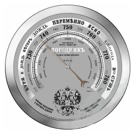 RST 07835 ПогодникЪ meteo ctrl 35 stainless steel металлический настенный барометр, который поможет определить предстоящие погодный условия с высокой точностью. Модели коллекции Погодник выполнены в старорусском стиле. . В основе данной модели надежный механизм-анероид.