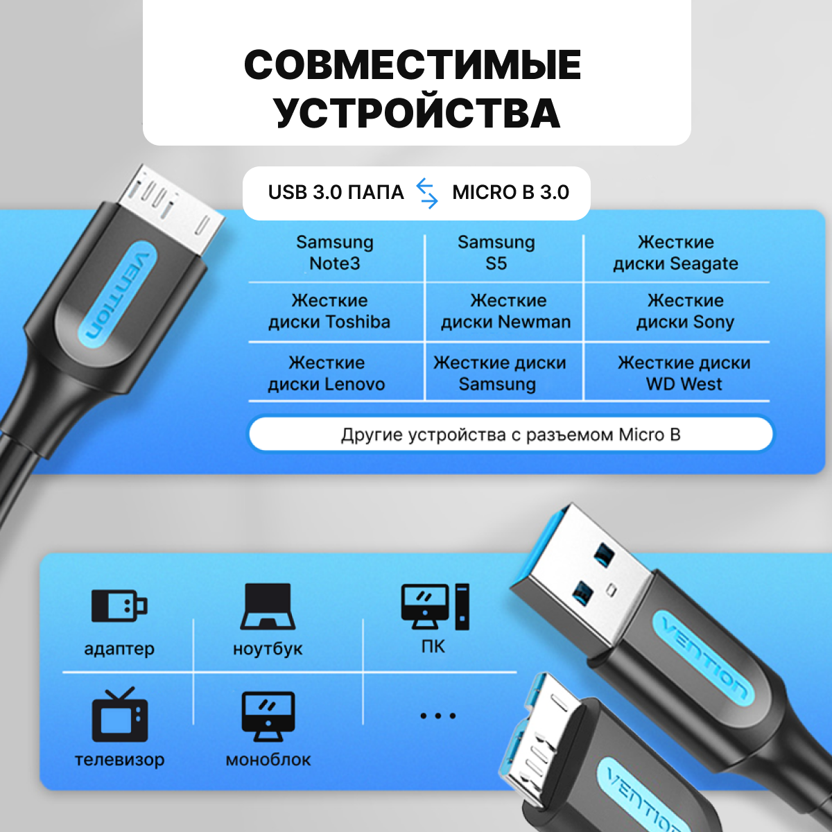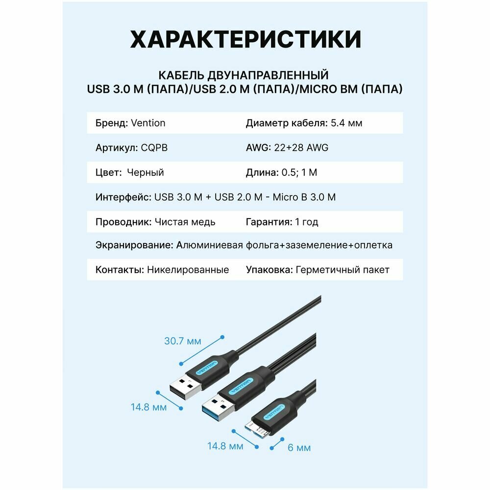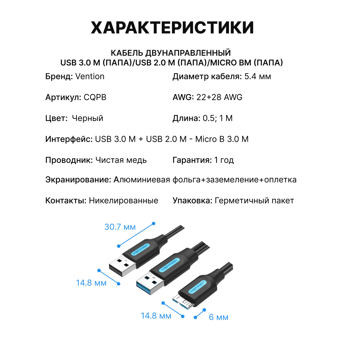 | Тип разъема | USB 3.0 A вилка/micro B вилка, USB 2.0 A вилка |