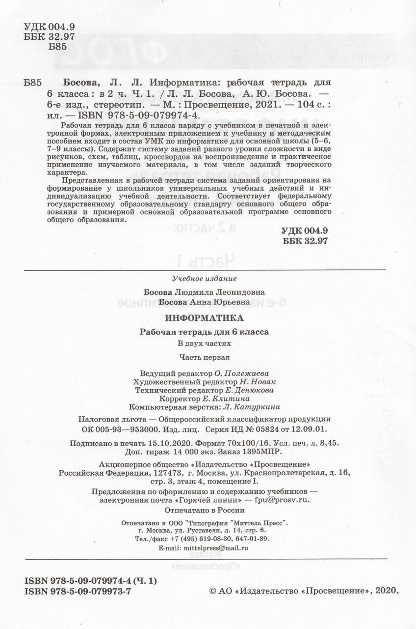 На сегодняшний день товар «Книга: Информатика Рабочая тетрадь для 6 класса В двух частях Часть 1 Часть 2 комплект из 2 книг (Анна Юрьевна Босова, Людмила Леонидовна Босова); БИНОМ. Лаборатория знаний, 2021» можно купить с кешбеком в 3 магазинах: book24, Читай-город, Буквоед