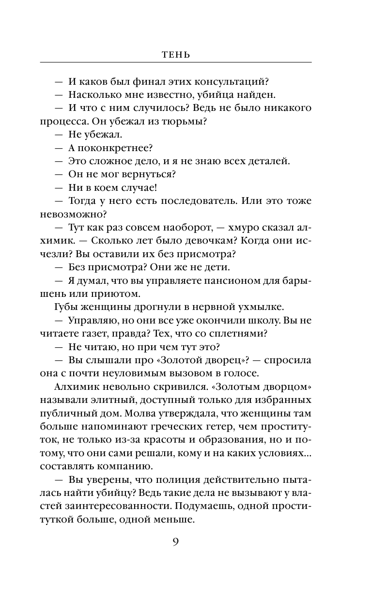Представленный здесь роман польского писателя Адама Пшехшта "Тень",всё такой же интересный и увлекательно написанный,как и два его предыдущих произведения "Адепт" и "Губернатор",все вместе они составляют трилогию,что прежде всего вызывает несомненный интерес,так это,необычный и интригующий,достаточно оригинальный и очень увлекательный сюжет,который легко читается.