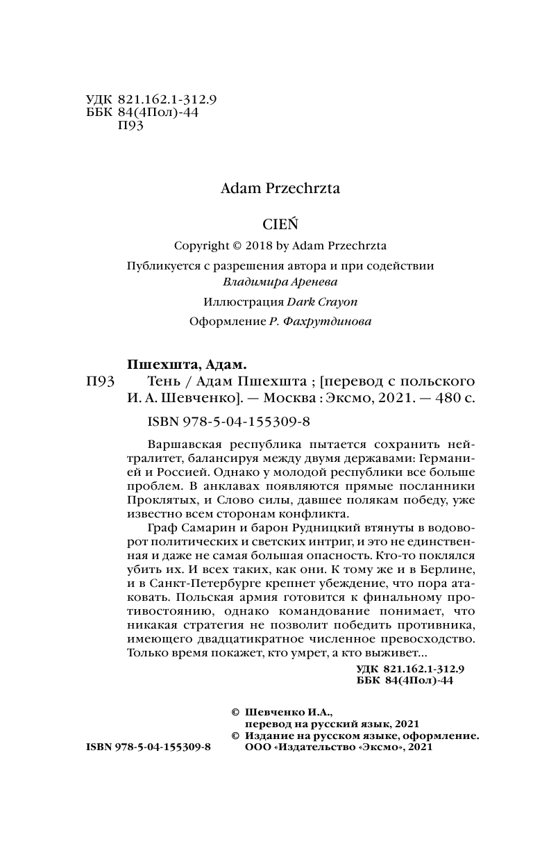 Книга: Тень (Адам Пшехшта); Эксмо, Fanzon, Редакция 1, 2021