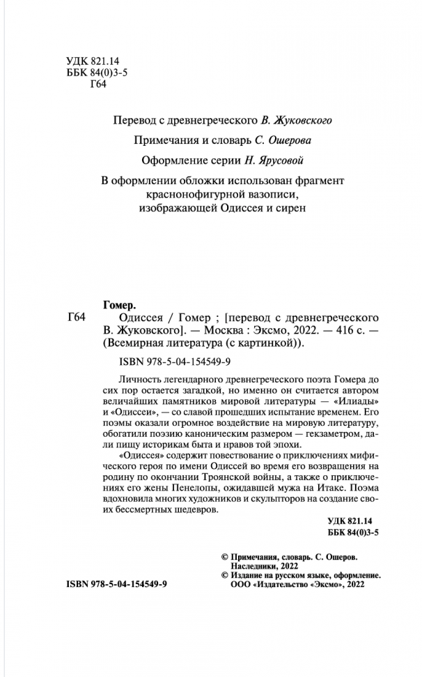 Книга: Одиссея (Гомер); Эксмо, Редакция 1, 2024
