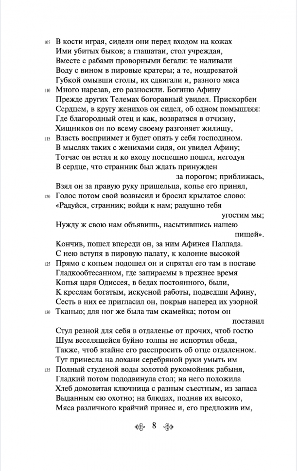 Продолжение \"Илиады\" Гомера, но по сути, абсолютно самостоятельный текст. \"Одиссею\" допустимо читать и отдельно от \"Илиады\", саму по себе - непосредственного логического продолжения первой книги здесь нет. Я к стилю Гомера, после чтения \"Илиады\", уже привык, сложностей с восприятием текста у меня не было. Я уже принимал этот текст как привычный язык, как современность. Для читающих Гомера впервые придётся немного потерпеть. Прочитайте спокойно хотя бы 10 страниц, может структура текста у вас в голове автоматически начнёт складываться и обретёт и объём, и смысл. Попробовать стоит, не пожалеете. Сюжет \"Одиссеи\" очень динамичный, слегка приключенческий, с философским уклоном. В настоящее время подобных произведений нет, не с чем даже сравнивать. Сюжет этой книги весьма раскручен, производились на его основе разные слепки (современные романы, спектакли, мультфильмы и др.), но первоисточник есть первоисточник - если хотите узнать и понять \"Одиссею\" - нужно читать только Гомера.