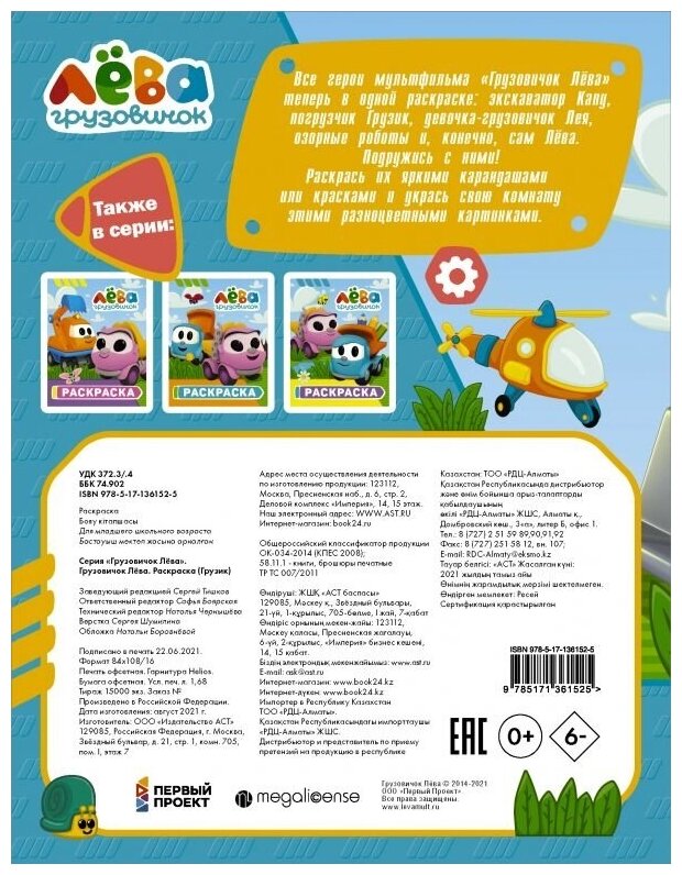Грузовичок Лёва. Раскраска (Грузик) (Боярская С. (ред.)); ИЗДАТЕЛЬСТВО "АСТ", 2021