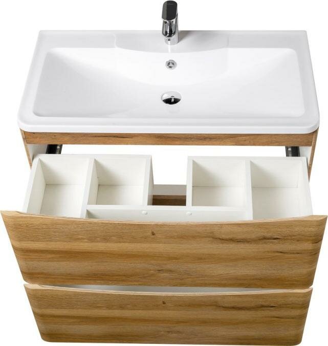 Монтаж: напольный. Материал раковины: искусственный мрамор. Система хранения: 2 выдвижных ящика. Дополнительная информация: база оснащена доводчиками скрытого монтажа с системой Soft close (плавного закрывания) - ;C врезными (фрезерованными) ручками в плоскости фасада; раковина сифоном не комплектуется