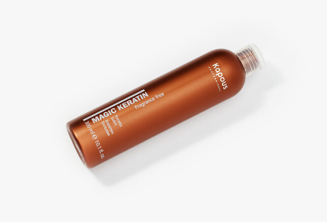 - гидролизованный кератин - химически разрушенные до более мелких размеров и водорастворимой формы молекулы натурального кератина. Он хорошо укрепляет волосы, проникает в него и заполняя собой пустоты. Сглаживает поверхность и увеличивает эластичность волос