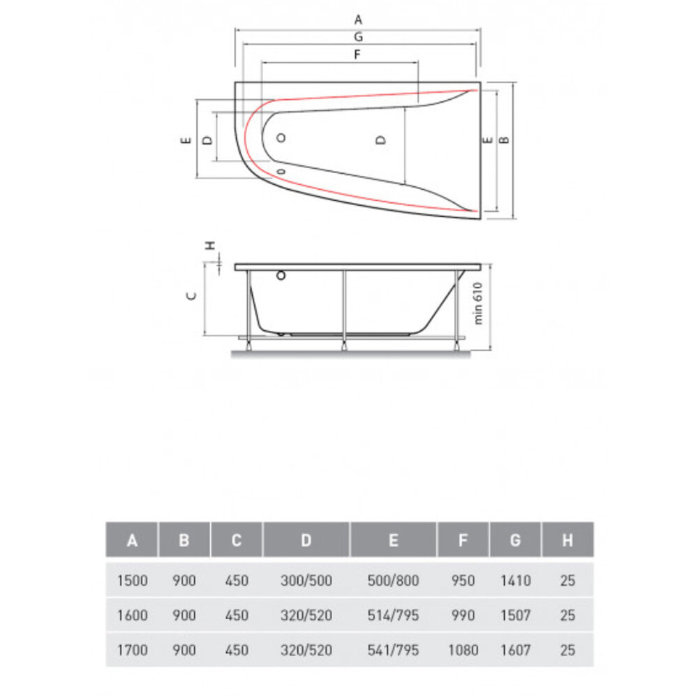 | Вид товара | Ванна без ножек/каркаса |