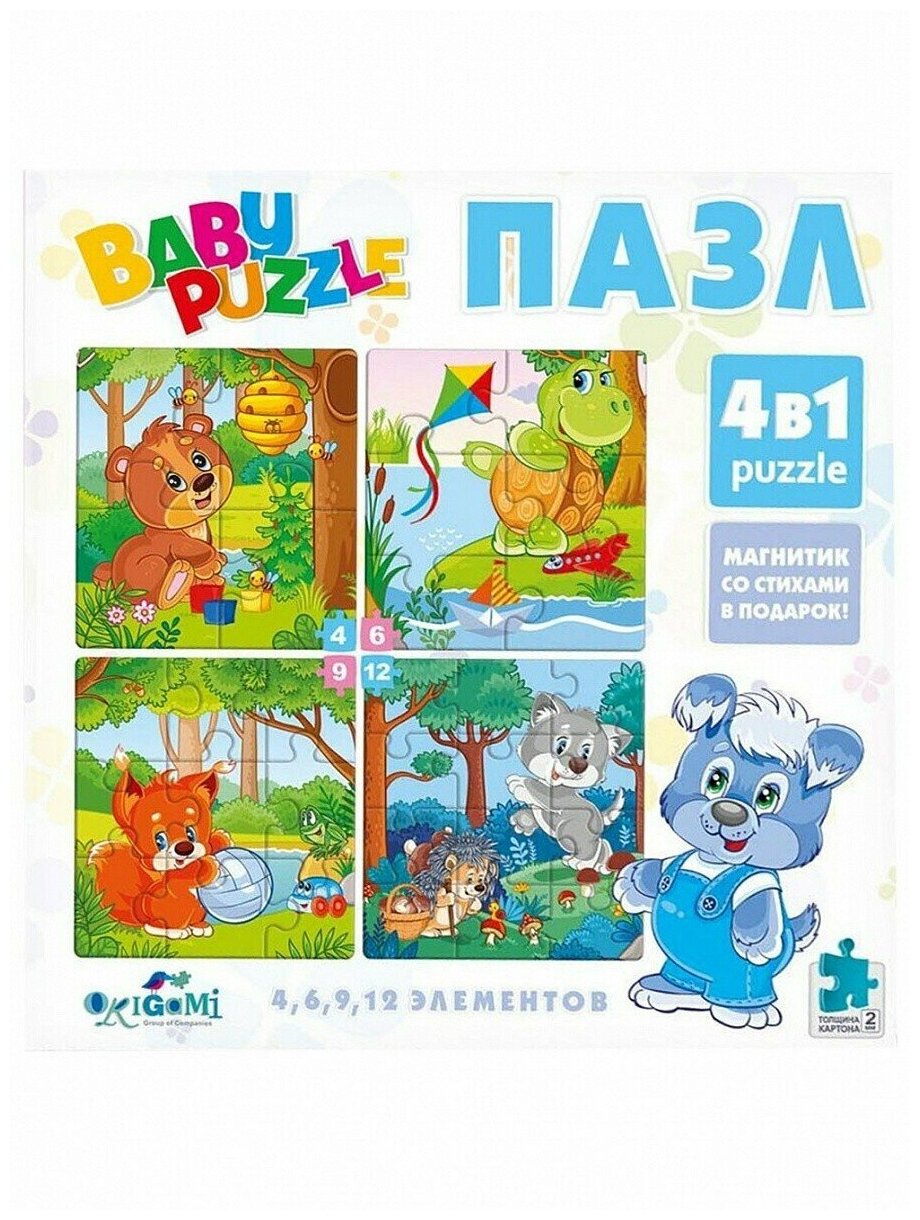 Пазл ORIGAMI 04893 для малышей 4 в 1 голубой