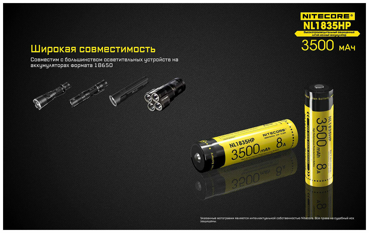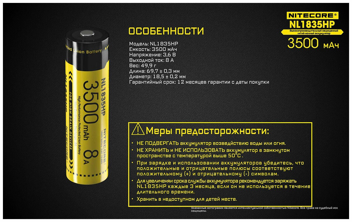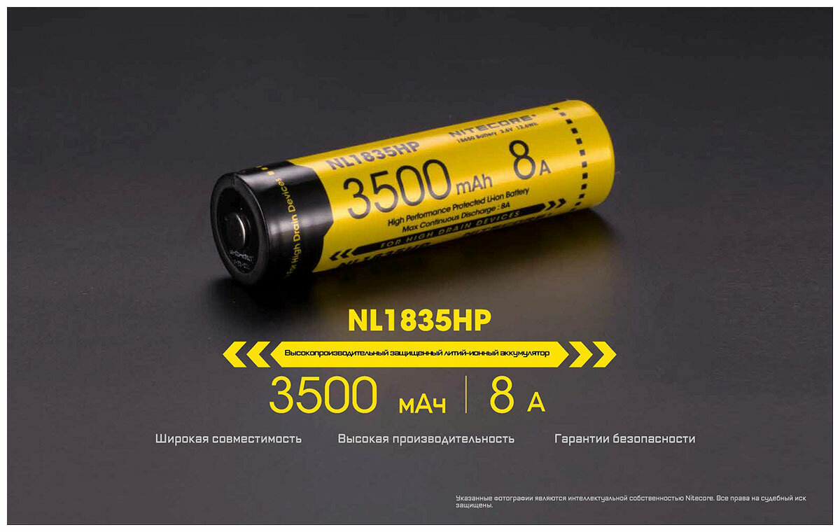 | Наименование модели | NL1835HP 18650 3.7v 3500mA |