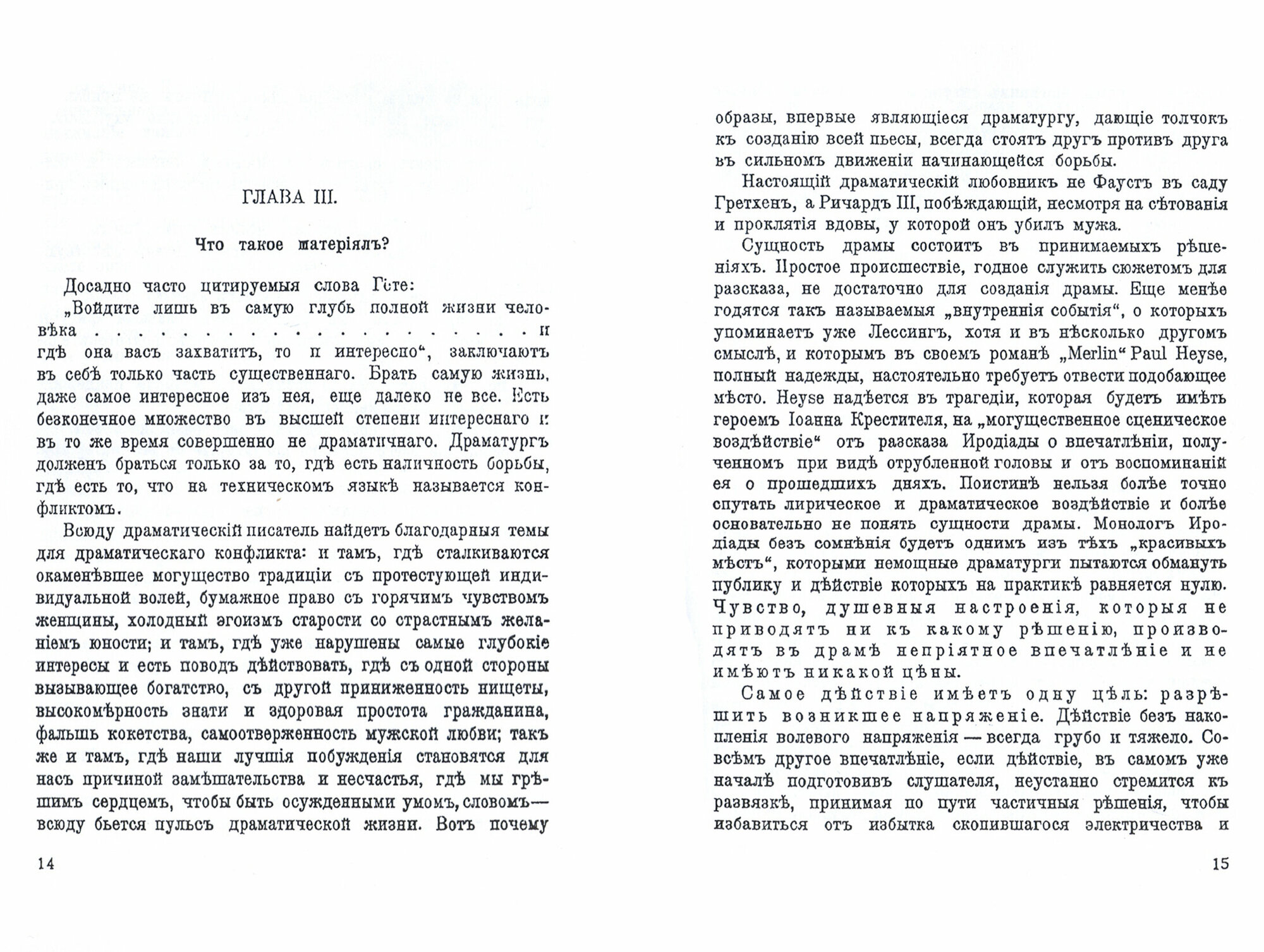 Репринт с издания. СПб. Издание журнала Театр и искусство. 1912 г. В книге даются те средства, которые позволят художнику слова создать драматическое произведение. Они следующие: возбуждающий момент, завязка, кульминационный пункт, перипетии и последнее напряжение, замысел фабулы, образование характера по правилам Аристотеля, заимствованным из античной драматургии. Но мало написать и опубликовать драматическое произведение. Для этого необходимо не читать, а видеть и слышать драму, потому что она в момент своего зарождения не столько пишется, сколько ваяется и строится. Поэтому сущность драмы состоит в искусстве воздействия на зрителя со сцены при посредстве человеческого тела, потому что мимика и движения актера зачастую открывают нам больше, чем слова, воспринимаемые нашим ухом. Словом драма принадлежит к изобразительном искусствам. Это должен понимать драматург и данная книга окажет ему в этом неоценимую помощь.