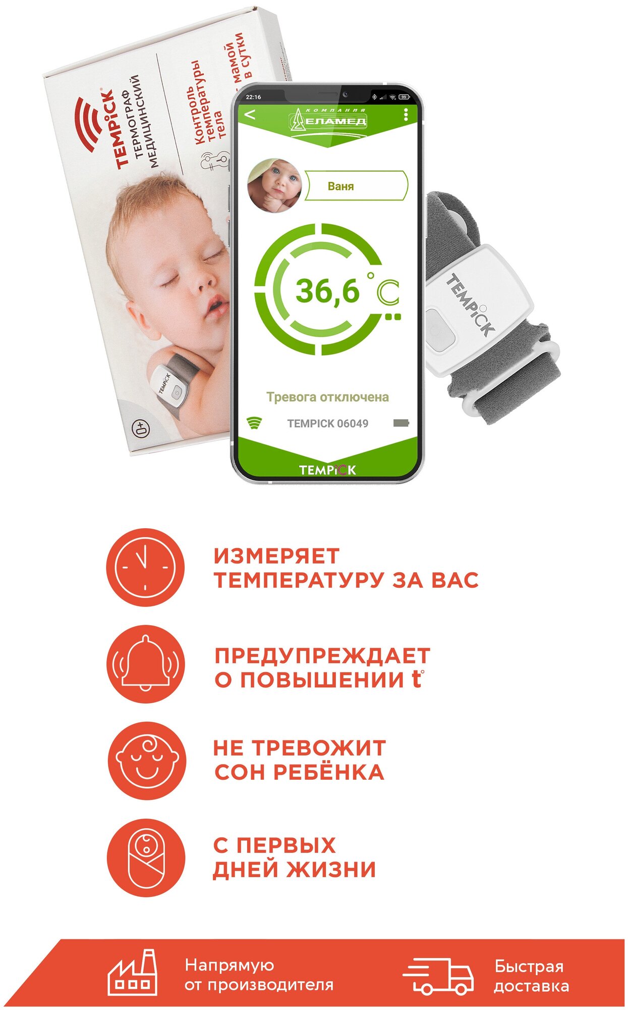 TEMPICK присматривает за температурой ребенка: