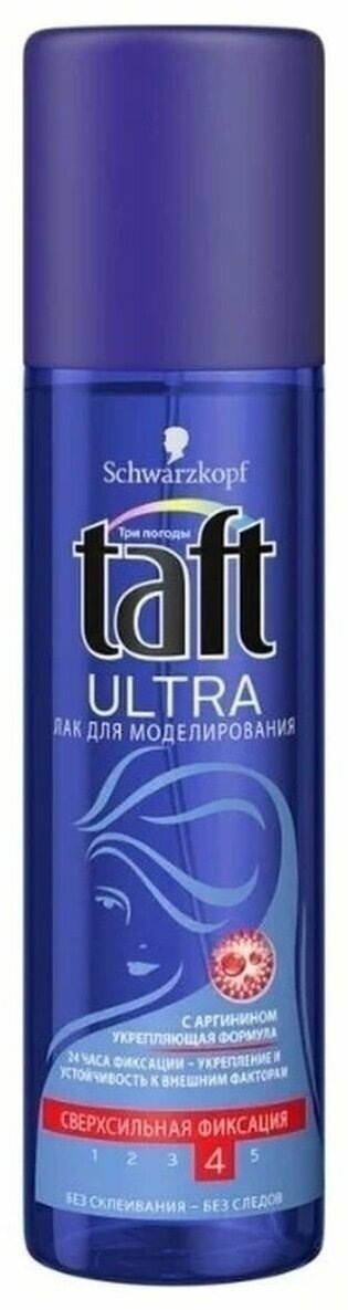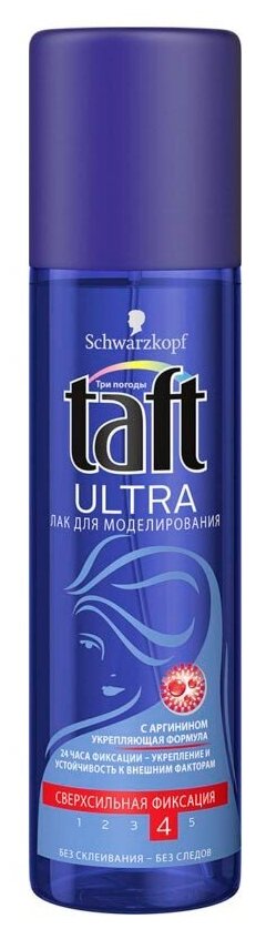 Укрепляющая формула с аргинином придает волосам силу от корней до кончиков и защищает их от воздействия внешних факторов. Обеспечивает сверхсильную и стойкую фиксацию! Формула Taft для превосходной фиксации и защиты укладки до 3-х дней в любую погоду: