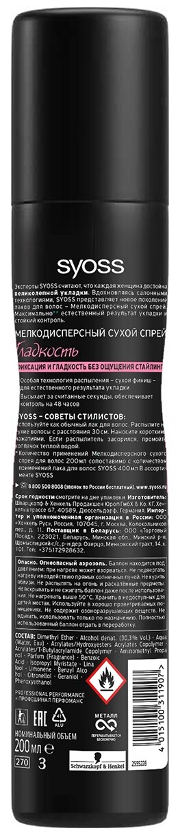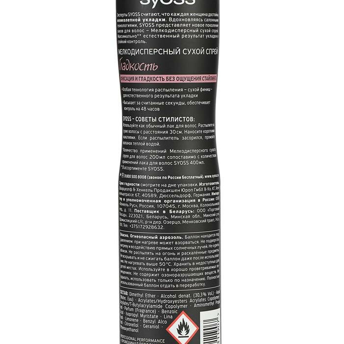 Спрей для волос мелкодисперсный сухой гладкость Syoss/Сьосс 200мл ХенкельDE (1568378)