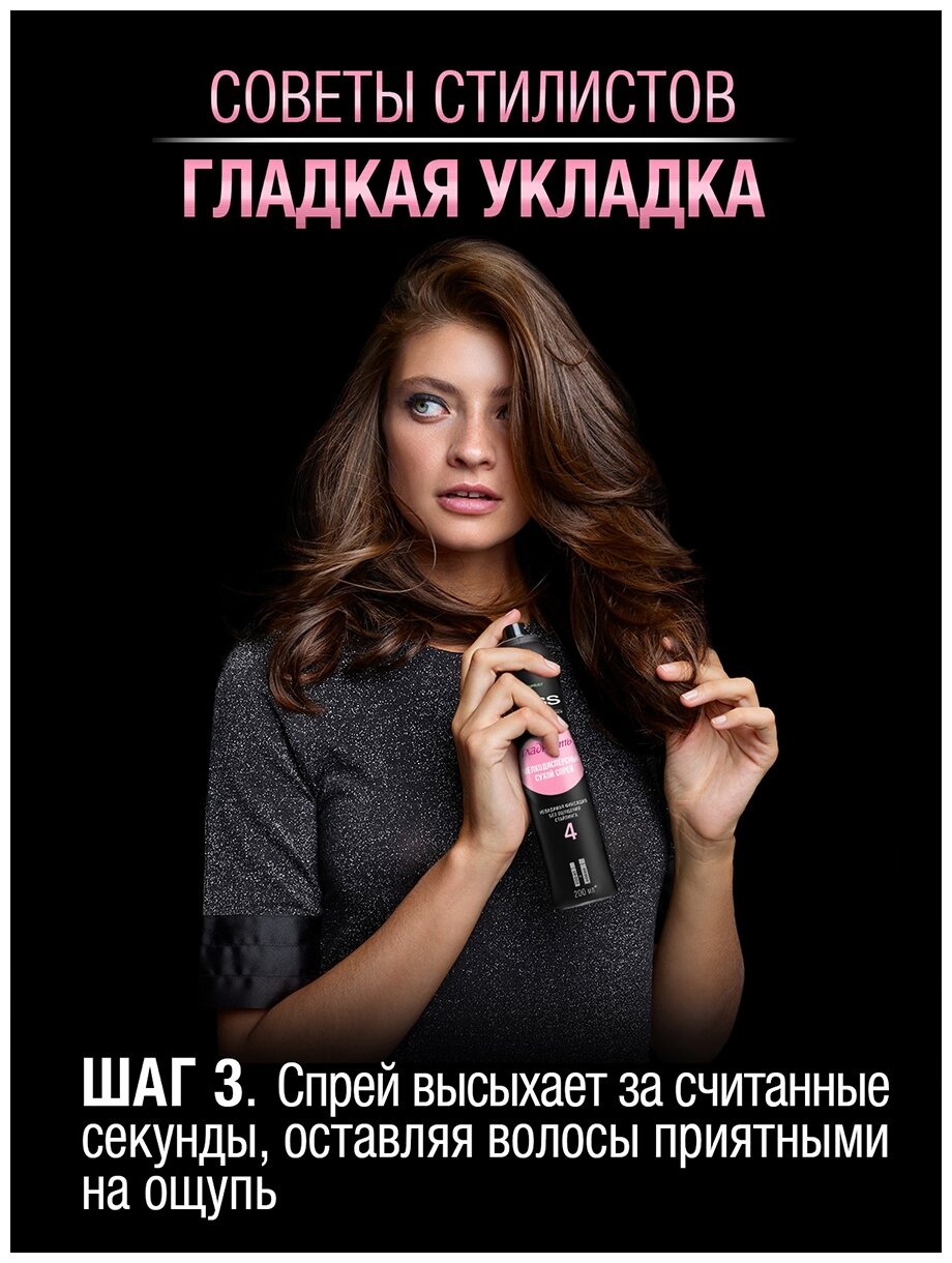 • Особая технология распыления – сухой финиш – для естественного результата укладки.