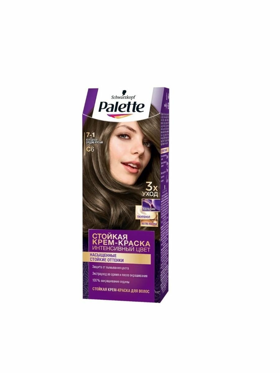 Краска для волос Icc 7-1 C6 Холодный средне-русый Palette/Палетт 110мл ХенкельRU (1568370)