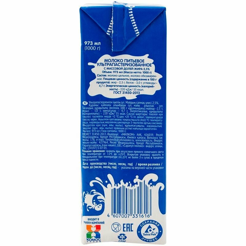 | Жирность | 2.5 |