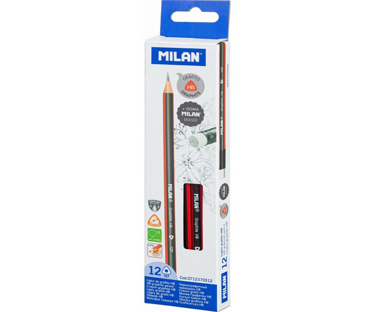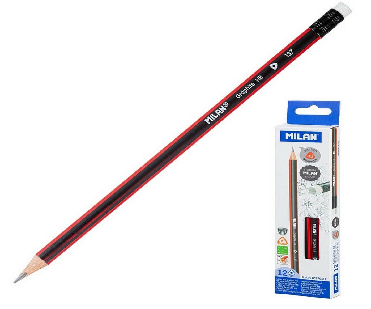 Карандаш Milan HB с ластиком 1шт 0712370312 973925