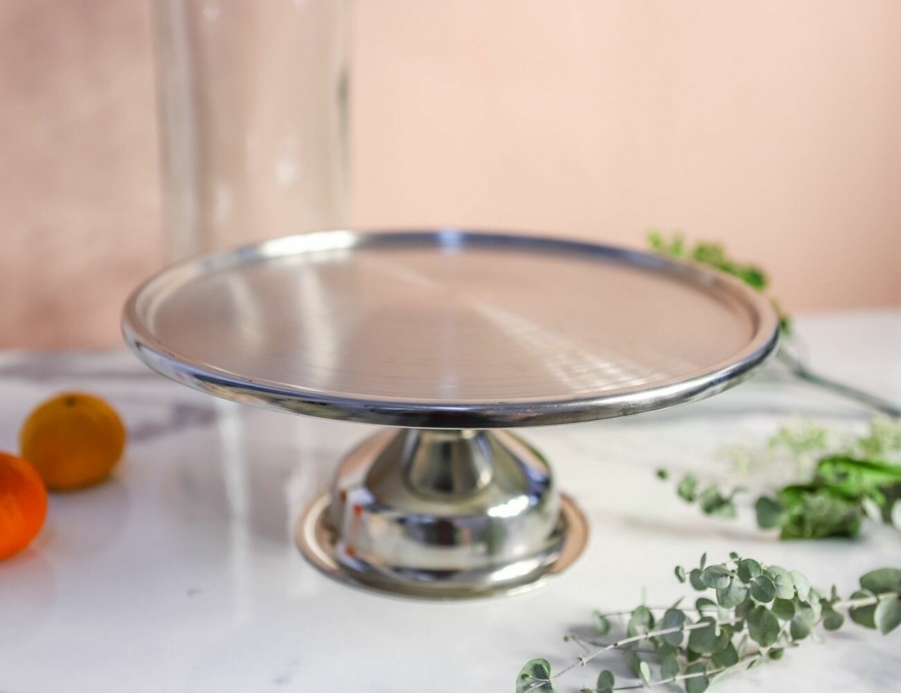 Тортовница из сверкающего металла, отполированного до зеркального блеска, займёт центральное место на праздничном столе, когда подойдёт время десерта. На этом блюде, торжественно установленном на подставке, вы сможете красиво подать торт, пирог, чизкейк, каравай. Небольшие бортики защитят лакомство от соскальзывания. Изготовлен аксессуар из нержавеющей стали, рассчитан на годы безупречной службы.