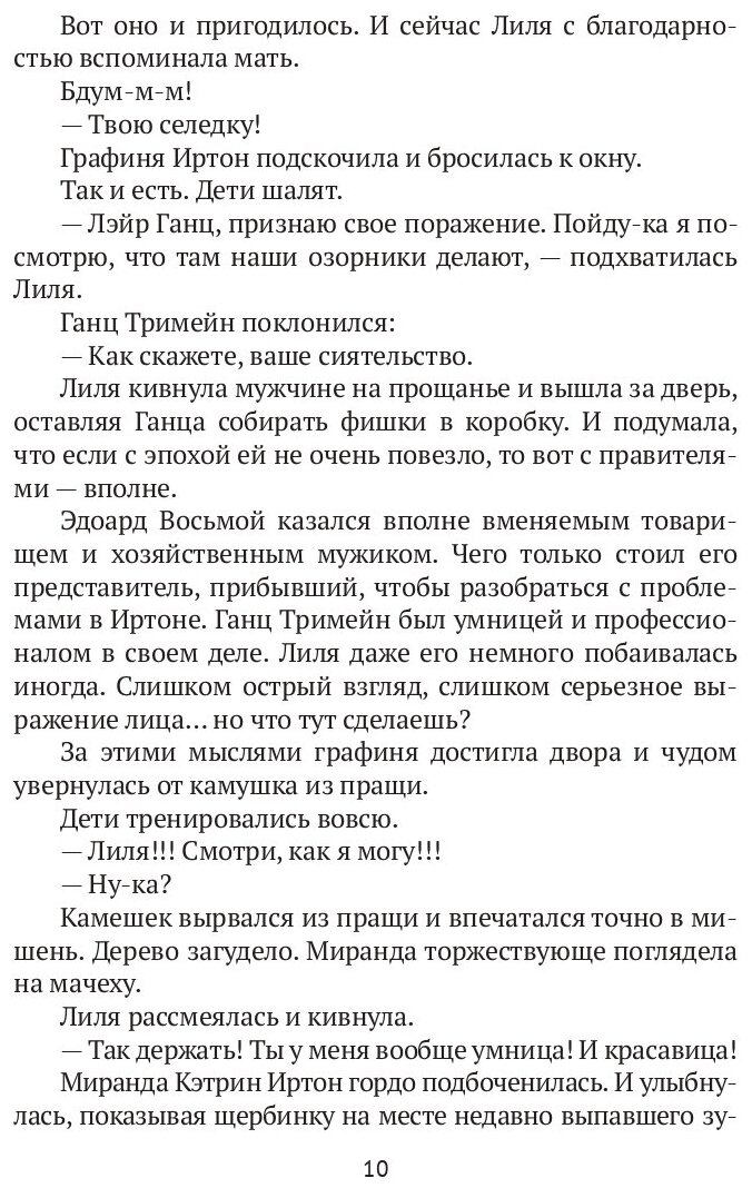 Графиня Лилиан Иртон и дома не может жить спокойно. Совершают налет работорговцы, пытается похитить любимую падчерицу злонамеренный сосед, подкатывает с неприличными предложениями учитель истории - и что со всем этим делать? Это еще не считая отравителей. Но наша современница, волей судьбы перенесенная в тело графини, справится со всеми проблемами. Отравителей в тюрьму, похитителей на виселицу, падчерицу воспитывать, производство налаживать… О-хо-хо, ведь графиня всего одна, и ей не разорваться. А дело делать надо. Но за пределами "благополучного" графства людям тоже скучать не приходится. Покушения и заговоры цветут пышным цветом. И впереди поездка в столицу по приглашению короля… Ну так что же… Глаза боятся. Руки делают.
