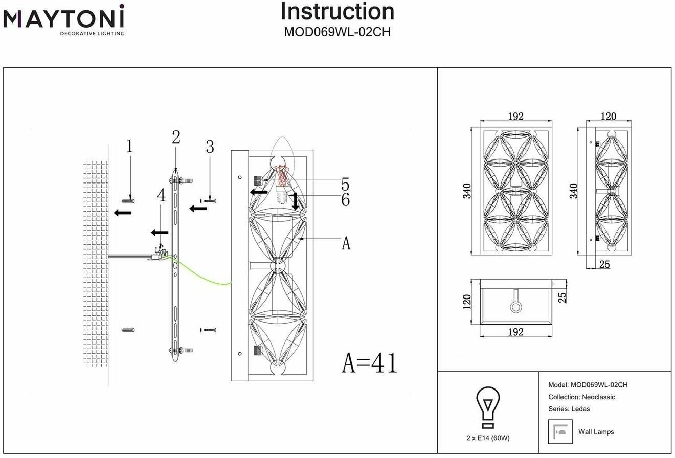 Настенный светильник Ledas MOD069WL-02CH - продукт известной компании Maytoni (Германия). Имеет максимальную мощность 120 Вт, освещает площадь до 6 кв. м. Отлично подойдет для таких мест, как гостиная, прихожая и коридор, спальня. Впишется в интерьеры следующих стилей: модерн.