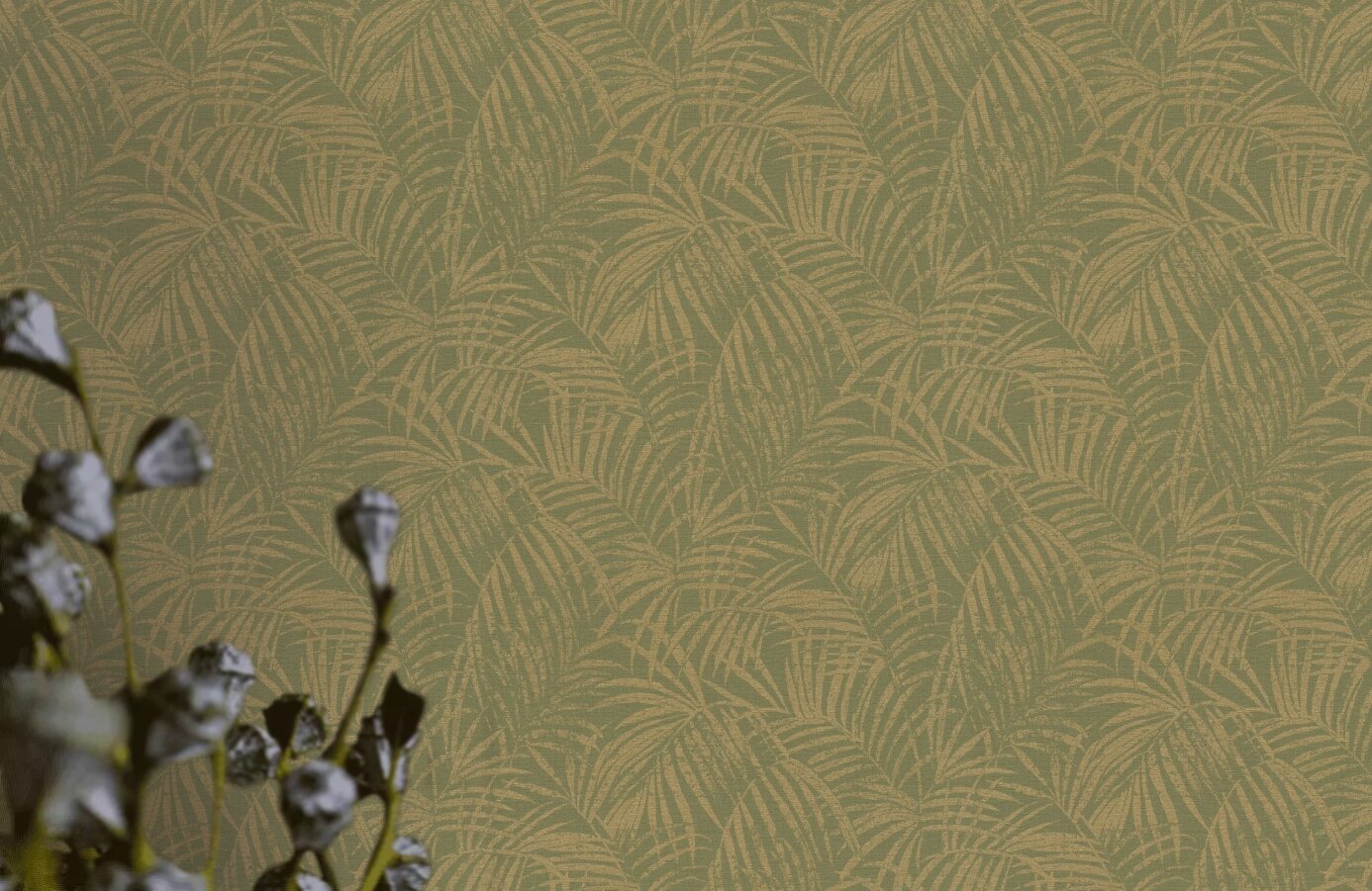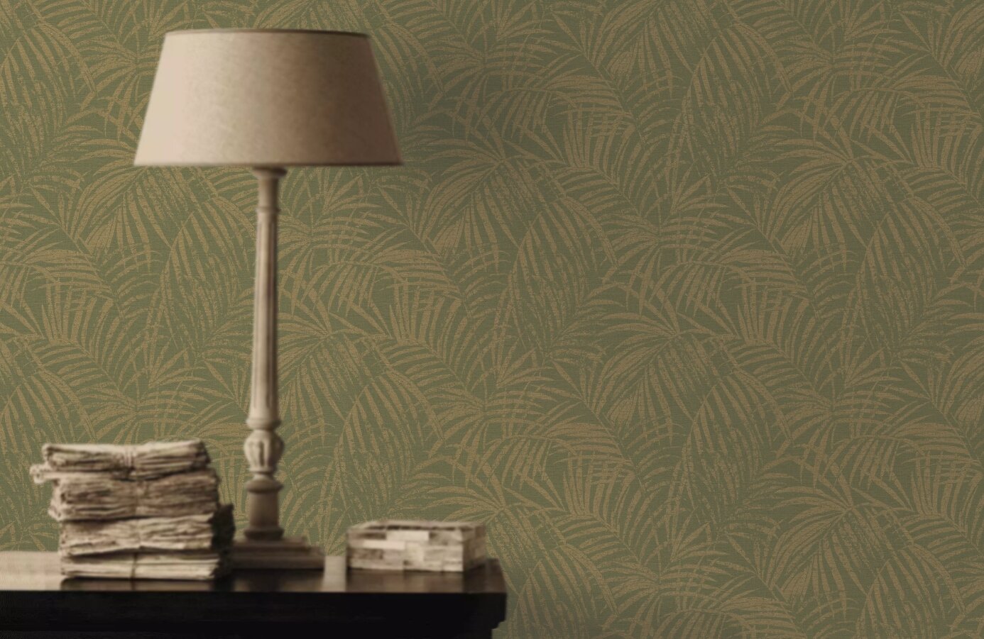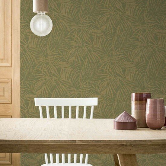 Обои RASCH Denzo II 832129 Винил на флизелине (0,53*10,05) Зеленый/Коричневый, Листья