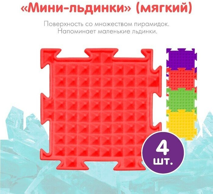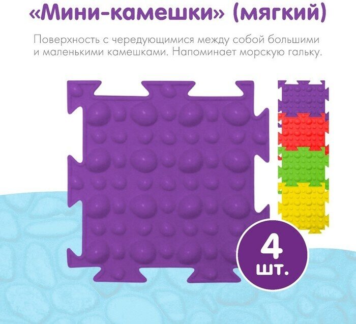 Набор «Мини-Микс» сенсорный конструктор состоит из разнорельефных модулей-пазлов разного размера: 16 ковриков меньшего размера 12.5 см - 4 «Мини-Трава» (мягкий), 4 «Мини-Шипы» (мягкий), 4 «Мини-Камешки» (мягкий), 4 «Мини-Льдинки» (мягкий) и 4 коврика большего размера (25 см) - 1 «Трава» (мягкий), 1 «Шипы» (мягкий), 1 «Камешки» (мягкий), 1 «Льдинки» (мягкий).