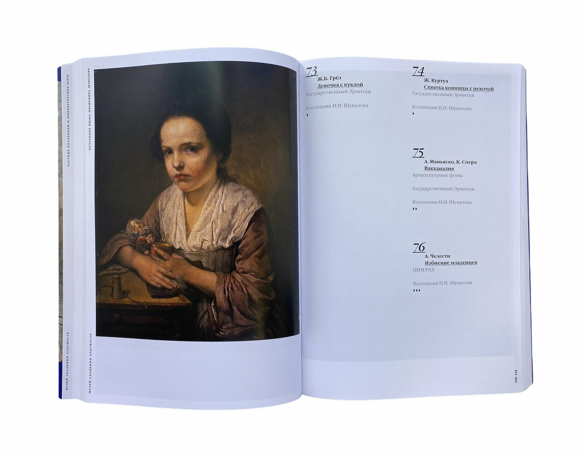 Книга посвящена теме частных коллекций в собрании старейшего художественного музея России - Музея Императорской академии художеств, основу которого заложил И.И.Шувалов, подарив в 1758 году свою коллекцию. Несмотря на государственный статус самой Академии, ее собрание со второй половины XVIII века и до начала XX столетия составляли именно частные коллекции. В исследовании рассматривается история появления в ее стенах как довольно крупных собраний графов Г.В.Орлова, В.В. Мусина-Пушкина-Брюса, Н.А.Кушелева-Безбородко, так и единичных даров владельцев коллекций, дипломатов, почетных членов Императорской Академии художеств. Интересной страницей истории учебного заведения являются дары императриц и императоров, президентов Академии художеств и ее профессоров. В подборе иллюстративного материала акцент сделан на собрании живописи, скульптуры, графики и декоративно-прикладного искусства Европы и России XVI-XIX веков Научно-исследовательского института при Российской академии художеств, а также Государственного Эрмитажа и Государственного Русского музея.