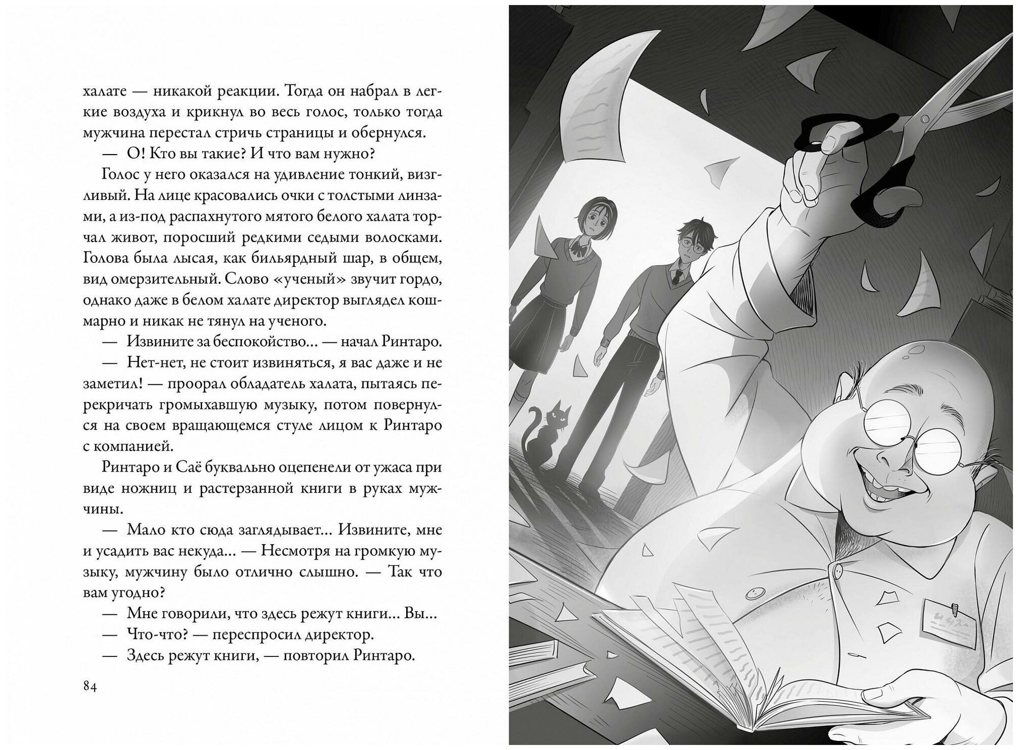 Старшеклассник Ринтаро Нацуки собирается закрыть букинистический магазин, который унаследовал от любимого дедушки. Но однажды самым обычным днем среди стеллажей появляется говорящий кот по имени Тигр. Он увлекает подростка за собой в захватывающее путешествие, цель которого — спасение книг. Сначала от интеллектуала, запирающего сотни томов в шкафу, затем от профессора, маниакально кромсающего страницы ножницами… Что ждет юного Ринтаро и его подругу Юдзуки на этом пути и как им спасти все книги, оказавшиеся в опасности?