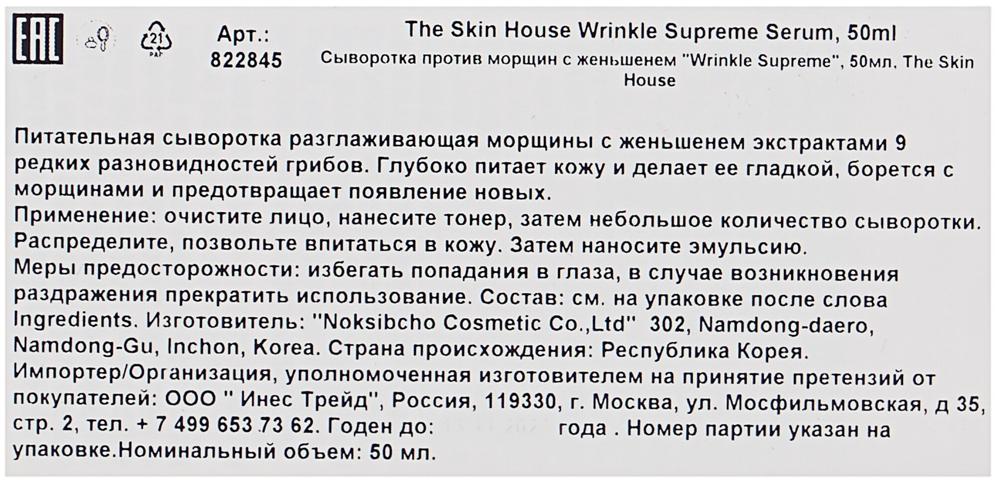 | Коллекция | The Skin Housep Wrinkle Supreme Serum |