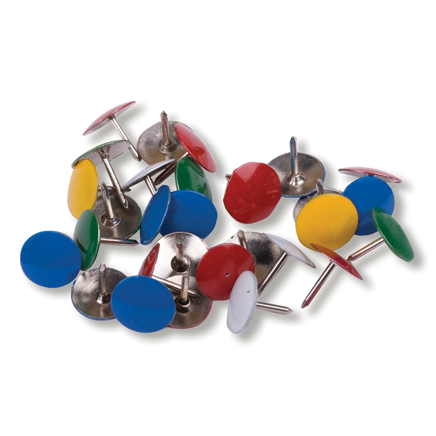 **Кнопки канцелярские** состоят из гвоздика и металлической шляпки. Используются для крепления бумажных листов на пробковые и фетровые доски. Благодаря игольчатому острию крепятся к поверхностям из ДСП, ДВП, дерева и других материалов.