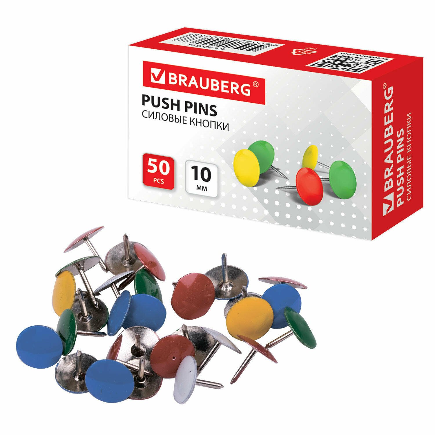 Кнопки канцелярские Brauberg цветные 10мм 50шт