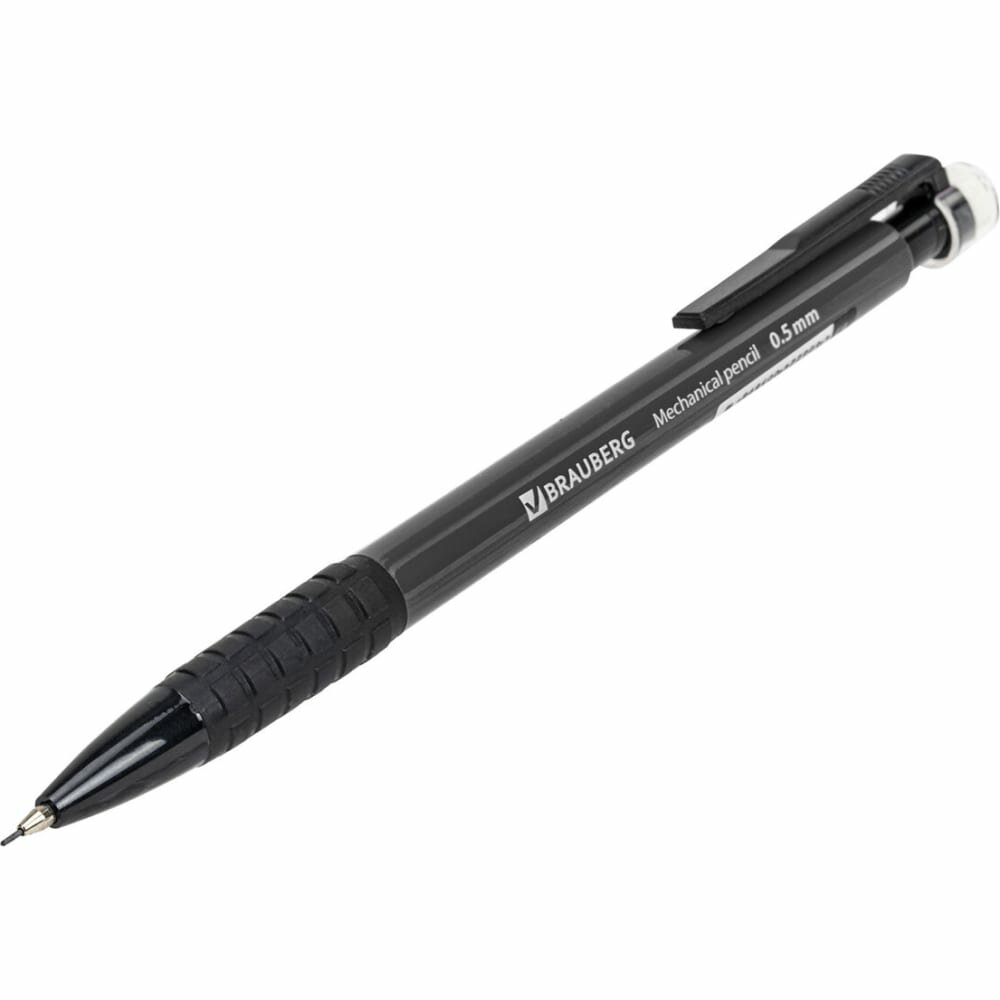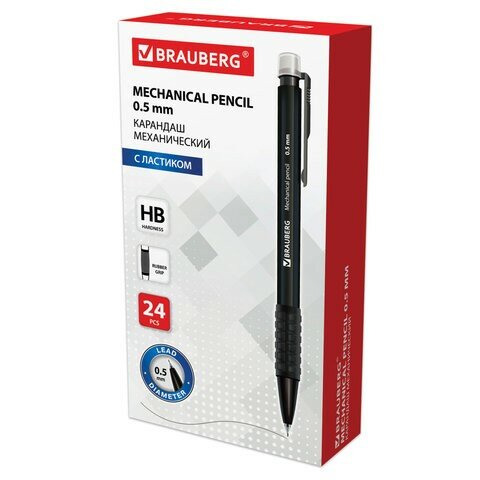 Механический карандаш BRAUBERG "Comfort" с корпусом черного цвета и удобным резиновым упором, исключающим скольжение пальцев во время письма. Карандаш с нажимным механизмом заправлен грифелем HB, всегда заточен, пишет тонкой ровной линией 0,5 мм, а встроенный ластик с легкостью поможет исправить ошибку. Эргономичная прорезиненная зона захвата обеспечивает лучший контроль и создает комфорт письма. Цанга карандаша убирается внутрь корпуса, поэтому даже на дне сумки или пенала такой карандаш не сломается.
