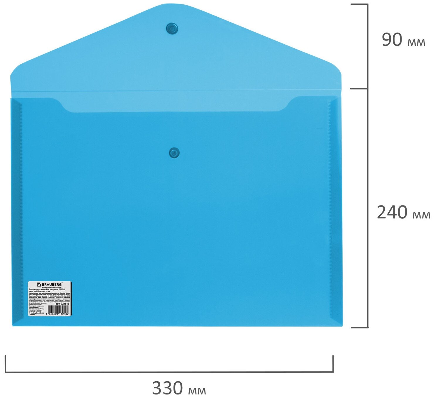 Папка-конверт Brauberg с кнопкой до 100 листов А4