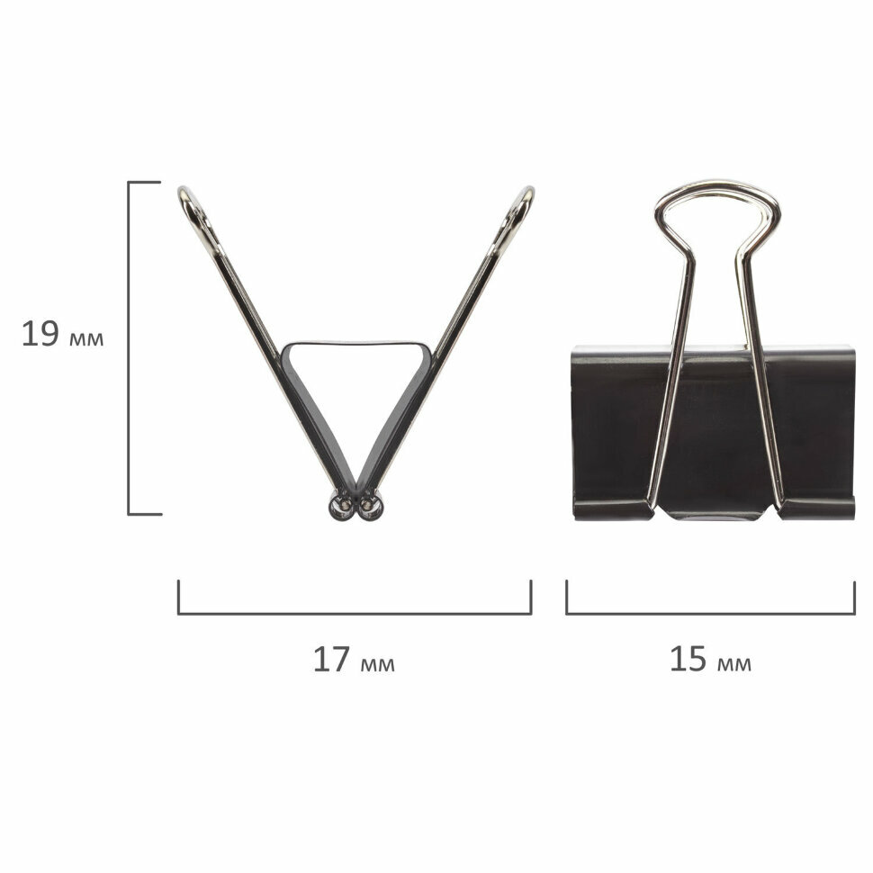 Зажимы для бумаг Brauberg 15мм 12шт