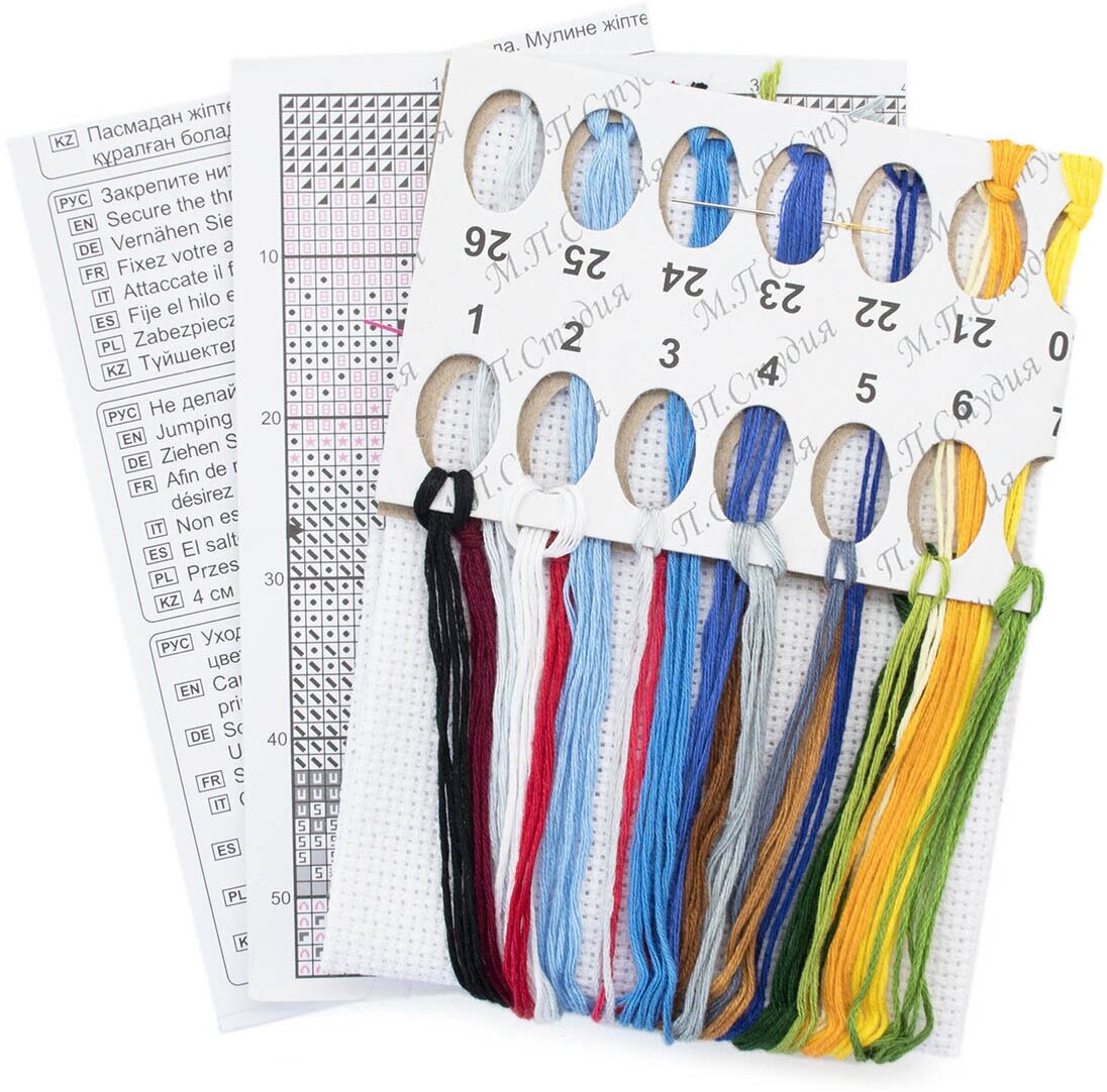 | В набор входит | канва Аида №14, нитки мулине 21 цветов, игла, двухцветная схема и руководство по вышиванию |