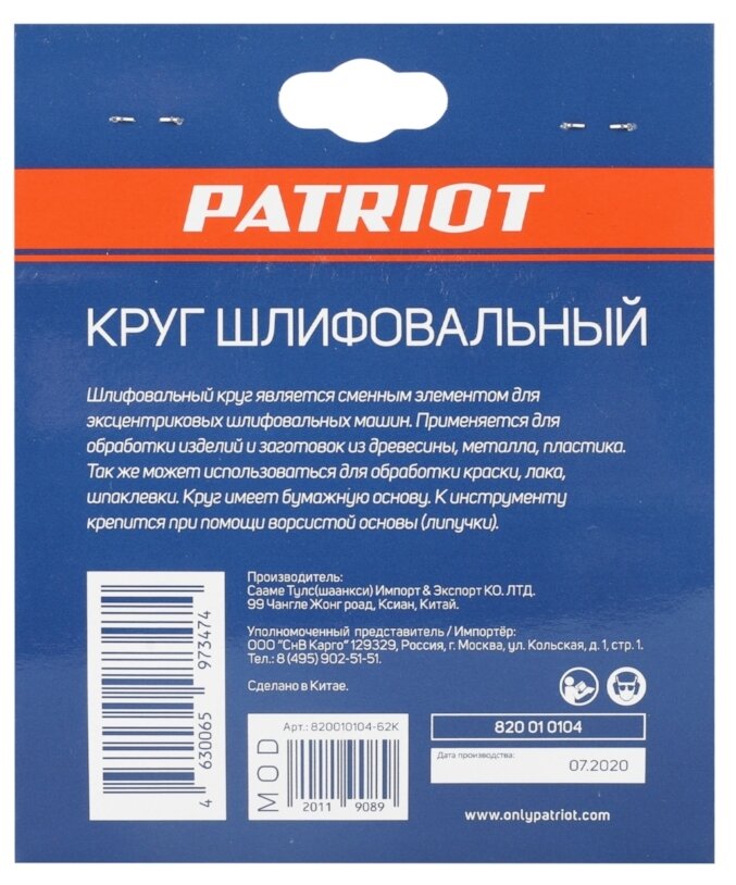 Круг шлифовальный PATRIOT 820010104 используется в качестве сменного элемента совместно с эксцентриковой шлифовальной машиной. Используется для шлифовки различных материалов: дерево, метал, пластик. Подойдет для обработки окрашенных поверхностей, поверхностей покрытых лаком, шпаклевкой.Круг изготовлен из качественного абразивного материала на бумажной основе. Имеет ворсистую основу-липучку Velcro с помощью которой надежно крепится к инструменту.Внимание, изображение товара может отличаться от реального! Верные параметры указаны в технических характеристиках товара.