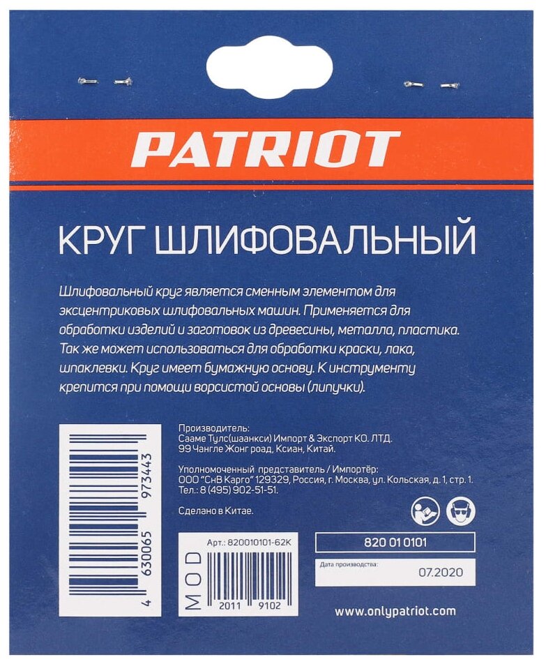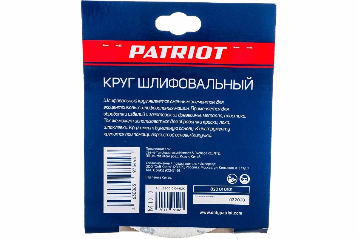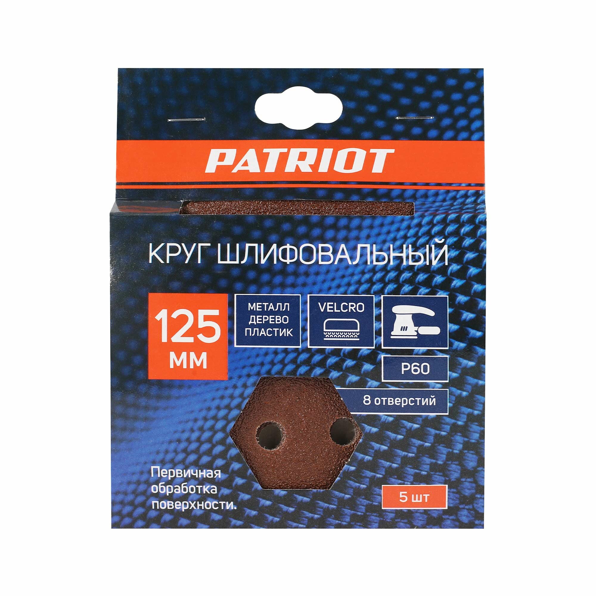 Круг шлифовальный Patriot 125мм, Р60, 8 отверстий, 5 шт