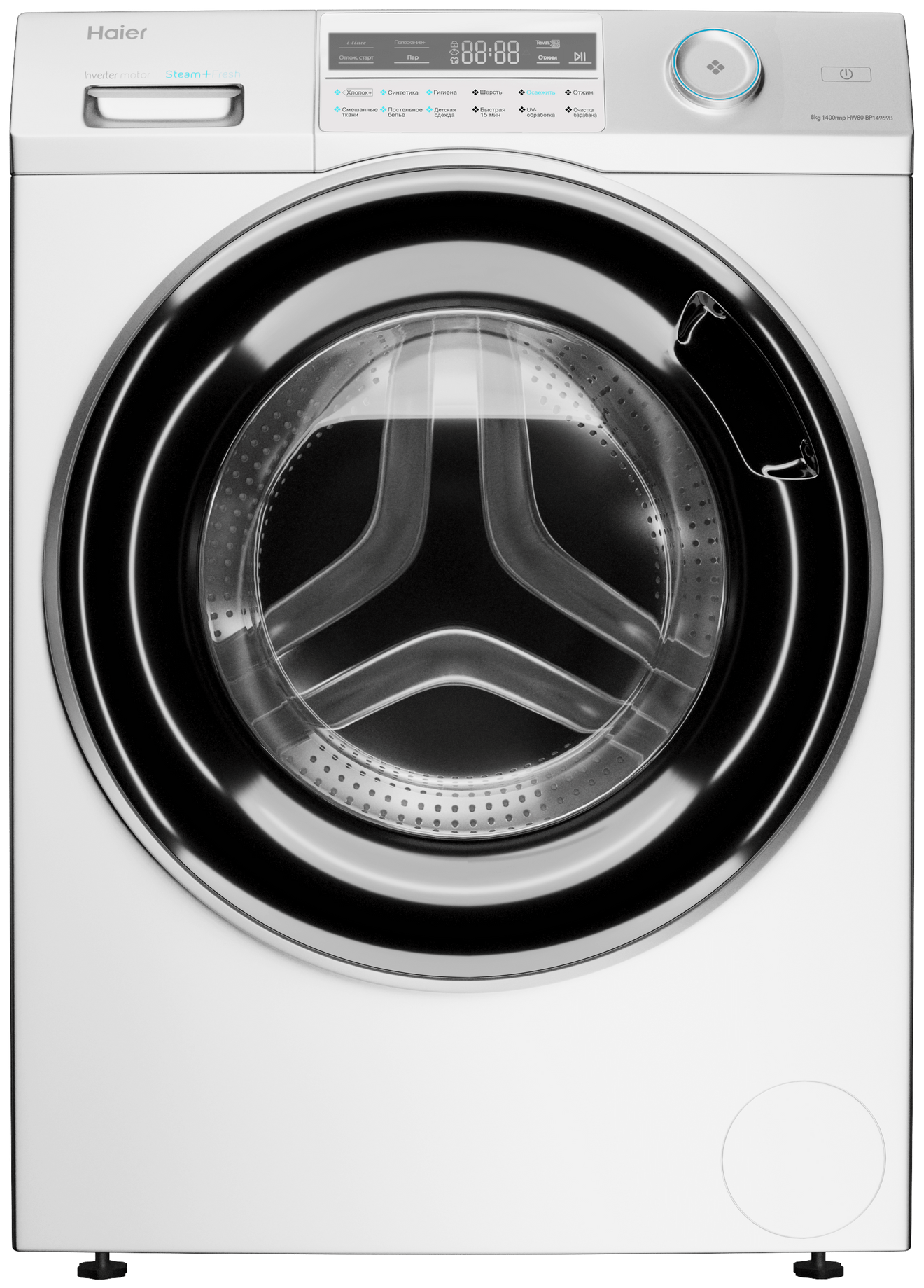 Программы (режимы) стирки | Дополнительное полоскание, Отжим, Полоскание, Постельное белье, Синтетика, Смешанное белье, Хлопок, Освежить, Гигиена, Шерсть, Детская одежда, Очистка барабана, Стирка с паром, UV обработка, Экспресс 14' |