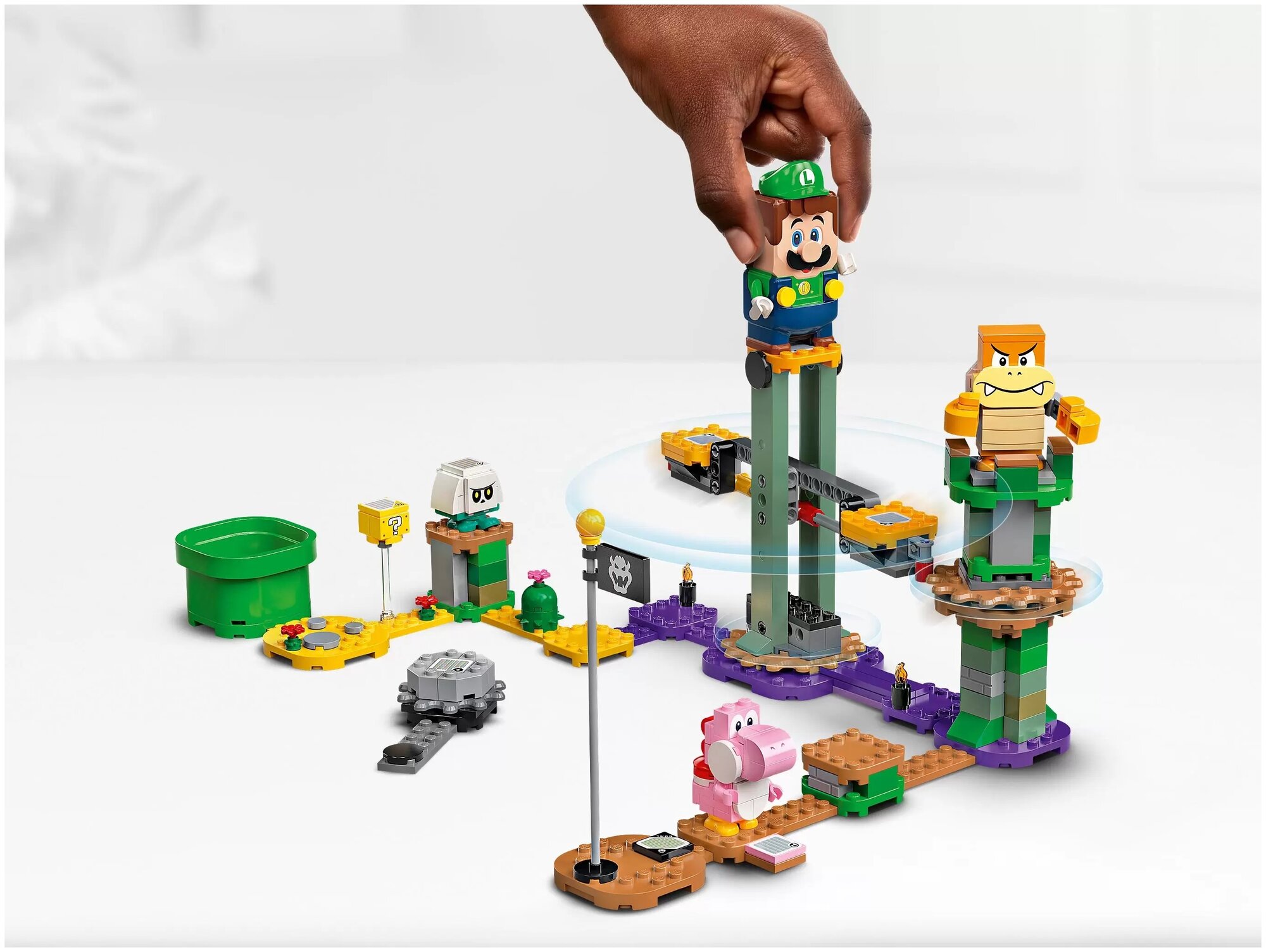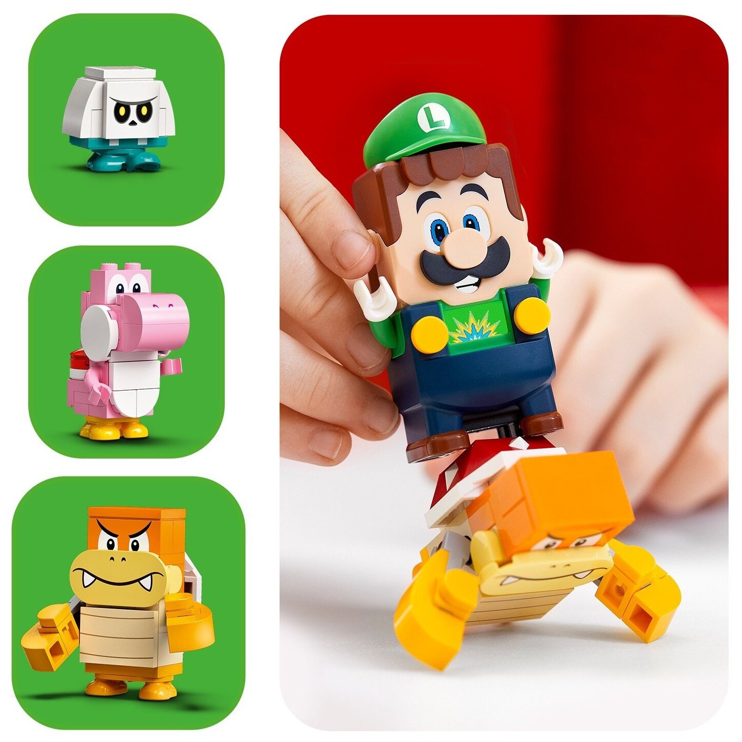 Стартовый набор «Приключения вместе с Луиджи» знакомит детей с интерактивной вселенной LEGO® Super Mario™. Это потрясающая игрушка в подарок для современных детей, и в наборе есть фигурка LEGO® Луиджи, реагирующая на мир с помощью ЖК-экрана и динамика. Игроки зарабатывают виртуальные монеты, помогая LEGO® Луиджи крутиться, качаться и летать, чтобы выполнить испытания, общаться с розовым Йоши и побеждать Бум-Бума и Гумбу-Скелета. Блок со знаком вопроса предлагает дополнительные награды.