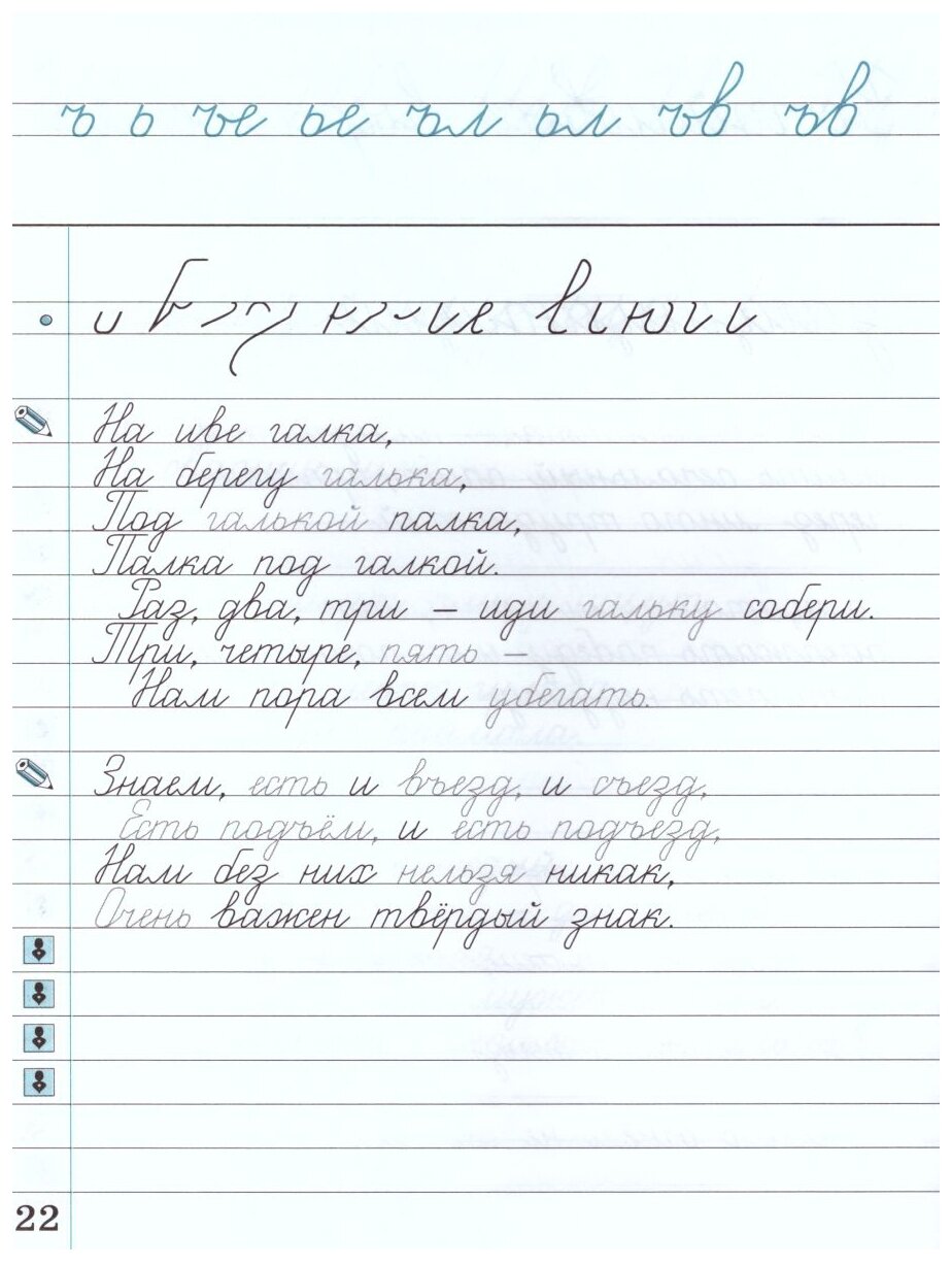 Комплект состоит из двух рабочих тетрадей и предназначен для отработки навыков чистописания.