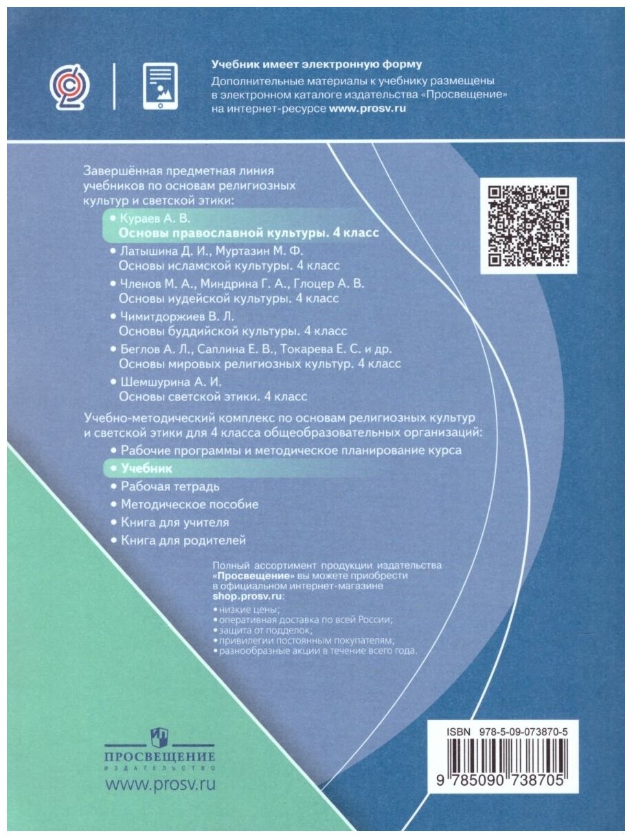 На сегодняшний день товар «Книга: Основы религиозных культур и светской этики 4 класс Основы православной культуры Учебник (Кураев Андрей Вячеславович); Просвещение, 2021» можно купить с кешбеком в 1 магазине: Яндекс.Маркет
