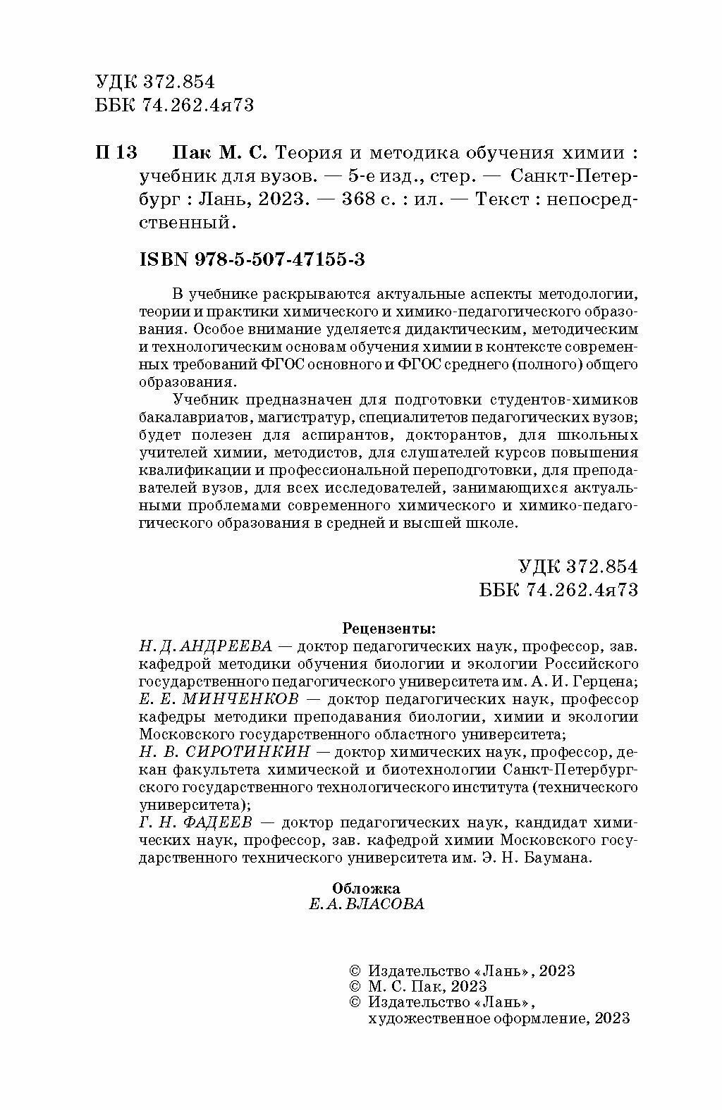 Теория и методика обучения химии (Пак Мария Сергеевна); Лань, 2023