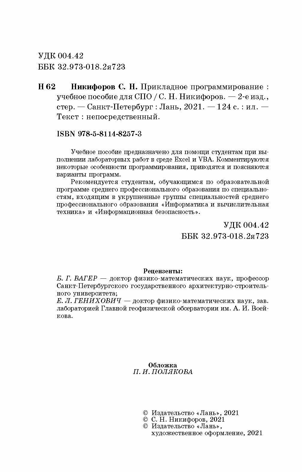 Прикладное программирование (С. Н. Никифоров); Издательство ЛАНЬ, 2021