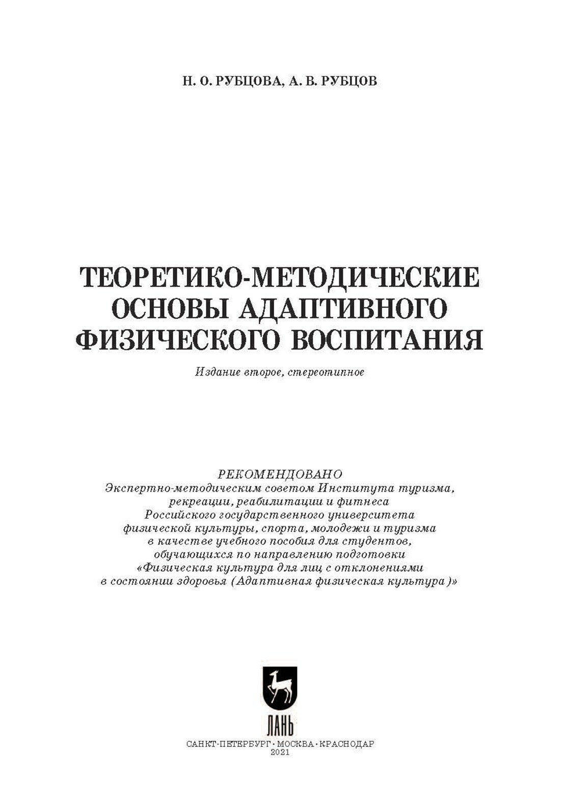 Теоретико-методические основы адаптивного физического воспитания (Рубцова Наталия Олеговна, Рубцов Алексей Валерьевич); Лань, 2021