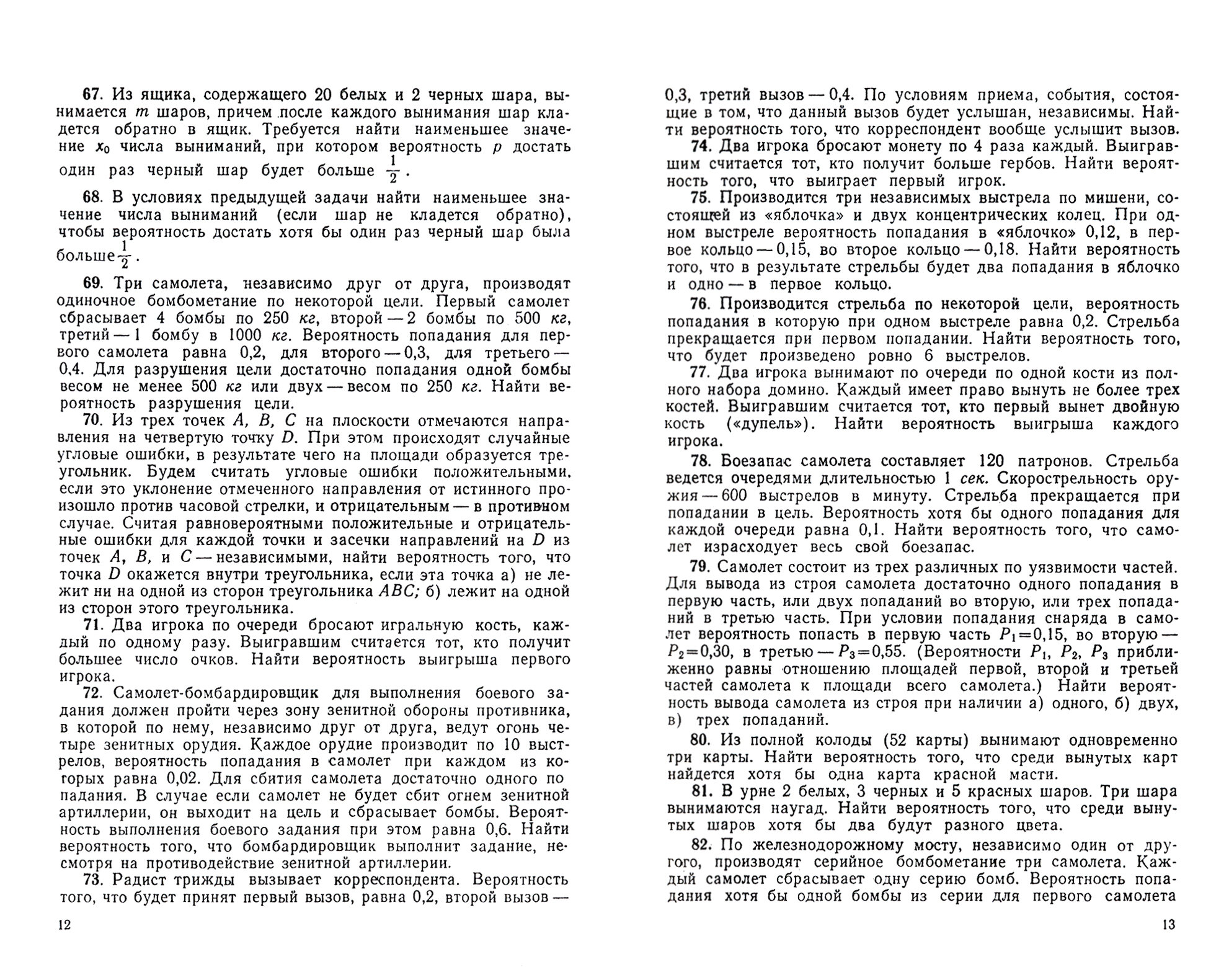 В сборнике содержатся 782 задачи по основным вопросам теории вероятностей, математической статистике, теории случайных процессов, теории массового обслуживания и теории информации. В начале каждой главы помещена краткая сводка основных определений, обозначений и формул. В каждом параграфе задачи расположены в порядке увеличения трудности. Большинство задач имеет решение или указания. Для простых задач или групп однородных задач приведены ответы. Благодаря рассмотрению достаточно широкого класса теоретико-вероятностных схем и конкретных распределений сборник обладает свойствами книги справочного характера. Учебное пособие предназначено для студентов университетов и технических высших учебных заведений.