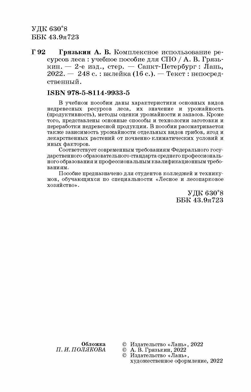 Комплексное использование ресурсов леса (А. В. Грязькин); Издательство ЛАНЬ, 2021